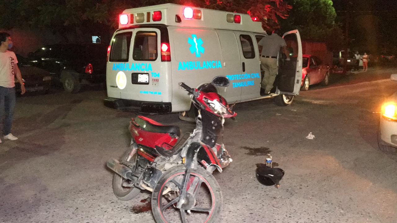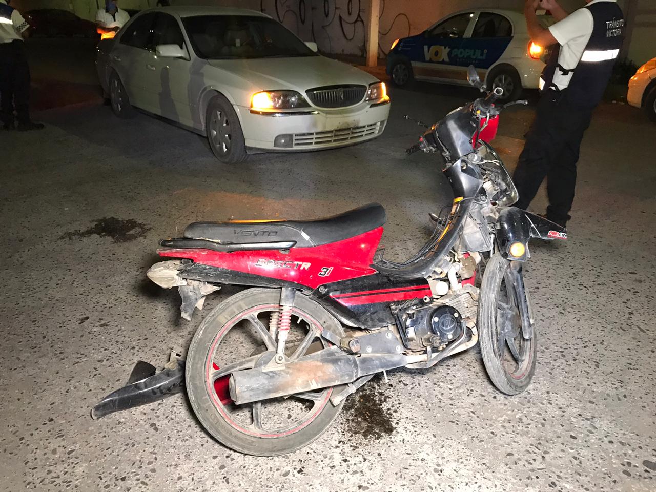Tras ser embestida por el automóvil la joven motociclista salió proyectada quedando tirada sobre el pavimento.