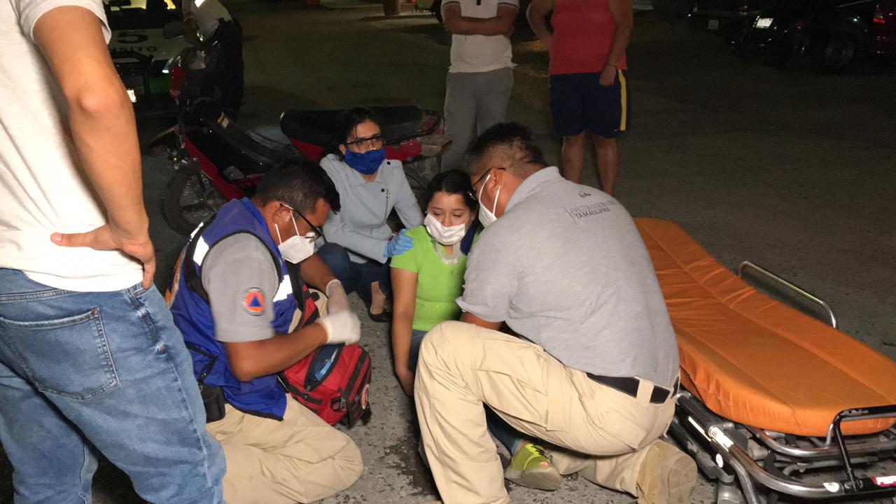 Después de ser atendida en el lugar los técnicos en urgencias médicas determinaron trasladar a la joven empleada a un hospital.