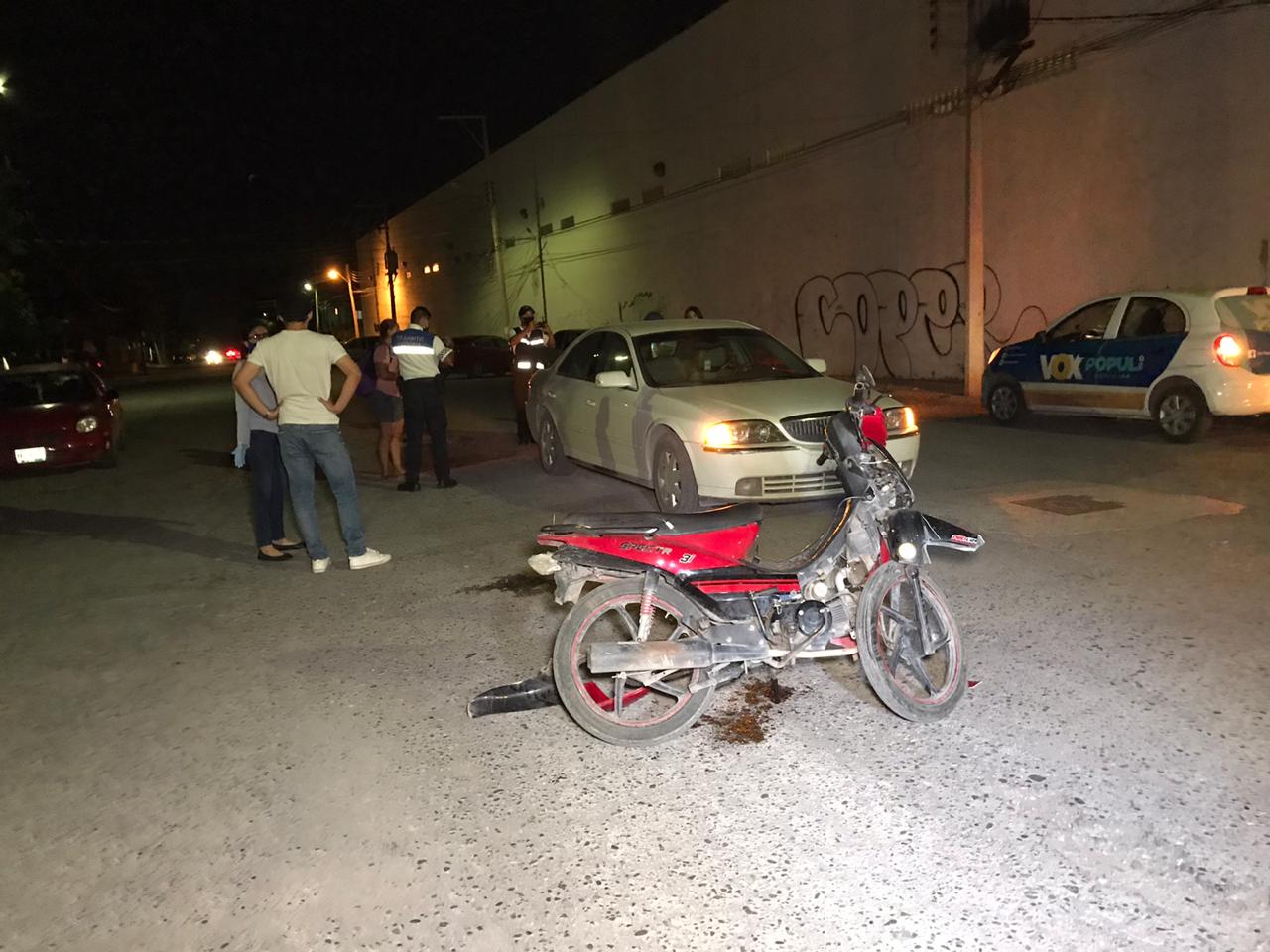 Por sacarle la vuelta a un bache un conductor terminó por estrellar de manera frontal su automóvil Lincoln contra una motocicleta tripulada por una empleada de una nevería.