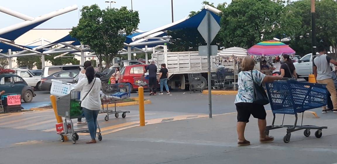 Las diferentes tiendas de autoservicio lucieron abarrotadas en su interior, donde la ciudadanía acudió a adquirir principalmente productos de la canasta básica para prevenirse ante el cierre de las tiendas de autoservicio así como tiendas de conveniencia y almacenes de mayoreo y menudeo durante los próximos dos fines de semana.