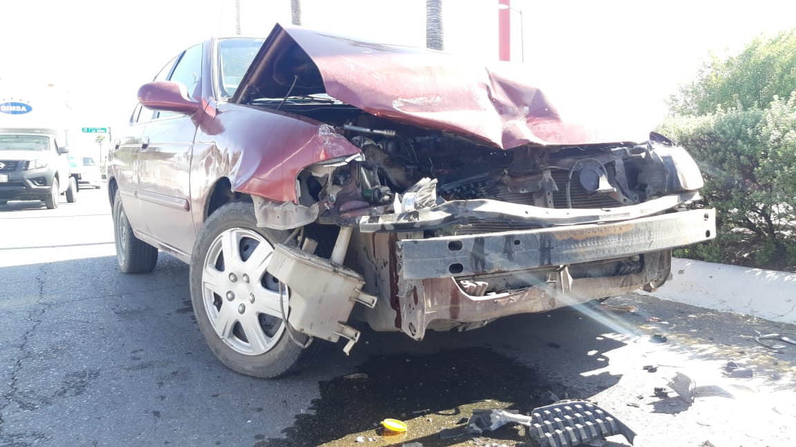 Metros antes de llegar al crucero con la calle Zacatecas el vehículo Sentra tripulado por un joven conductor se estampa en la parte posterior de una camioneta marca Nissan tipo NP300.