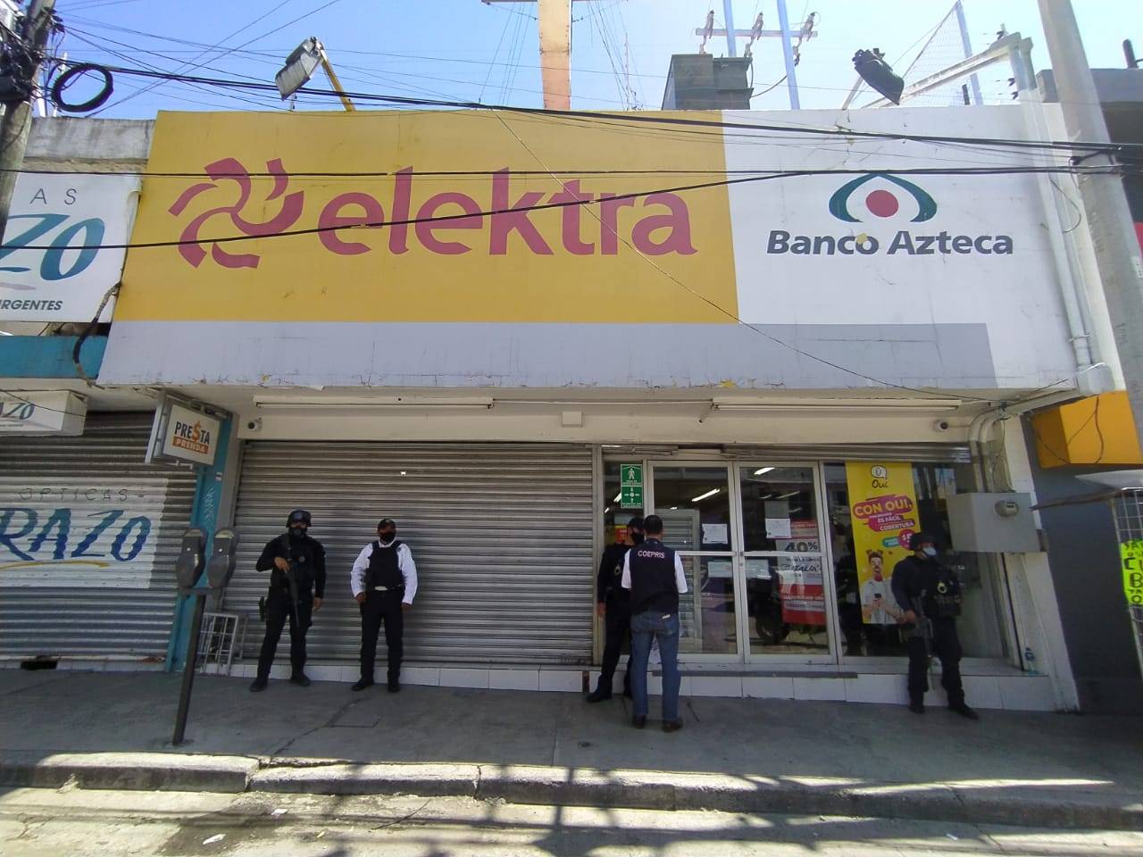 Por no acatar con las medidas sanitarias este domingo, personal de la Comisión Estatal para la Protección contra Riesgos Sanitarios (Coepris), colocó los sellos de suspensión de actividades en la sucursal de la Tienda Elektra ubicada en la calle 6 y 7 Morelos de Ciudad Victoria.