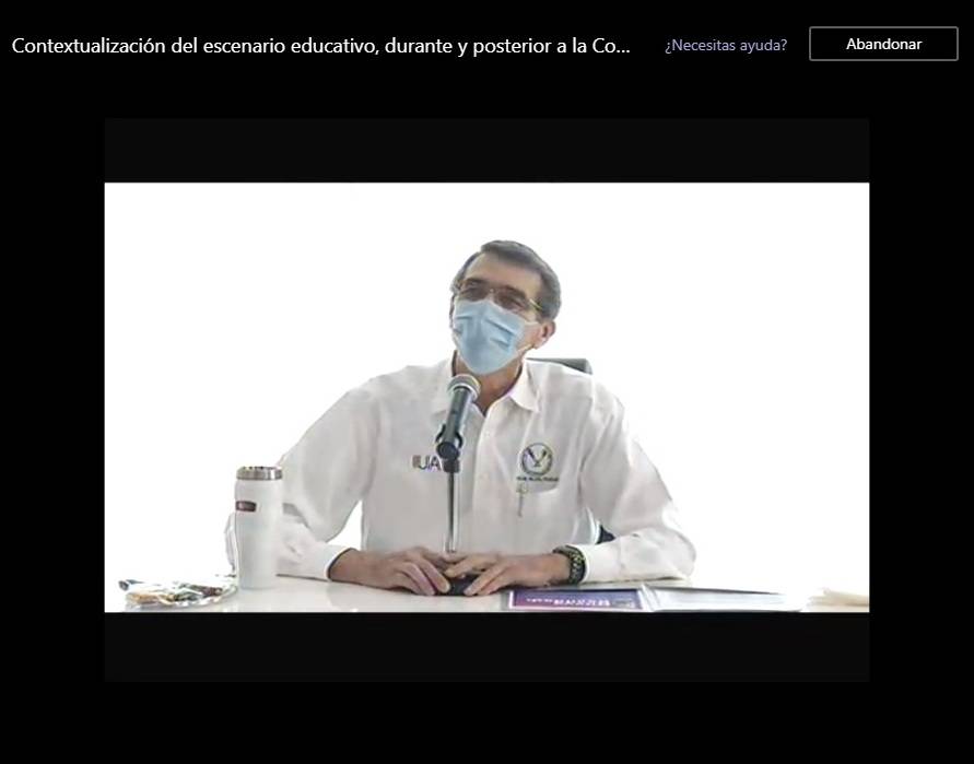 En su mensaje el Rector de la UAT, Ing. José Andrés Suarez Fernández, agradeció al ponente su participación y destacó los esfuerzos que está haciendo la universidad para afrontar los retos de la pandemia y seguir ofreciendo un servicio educativo de calidad.