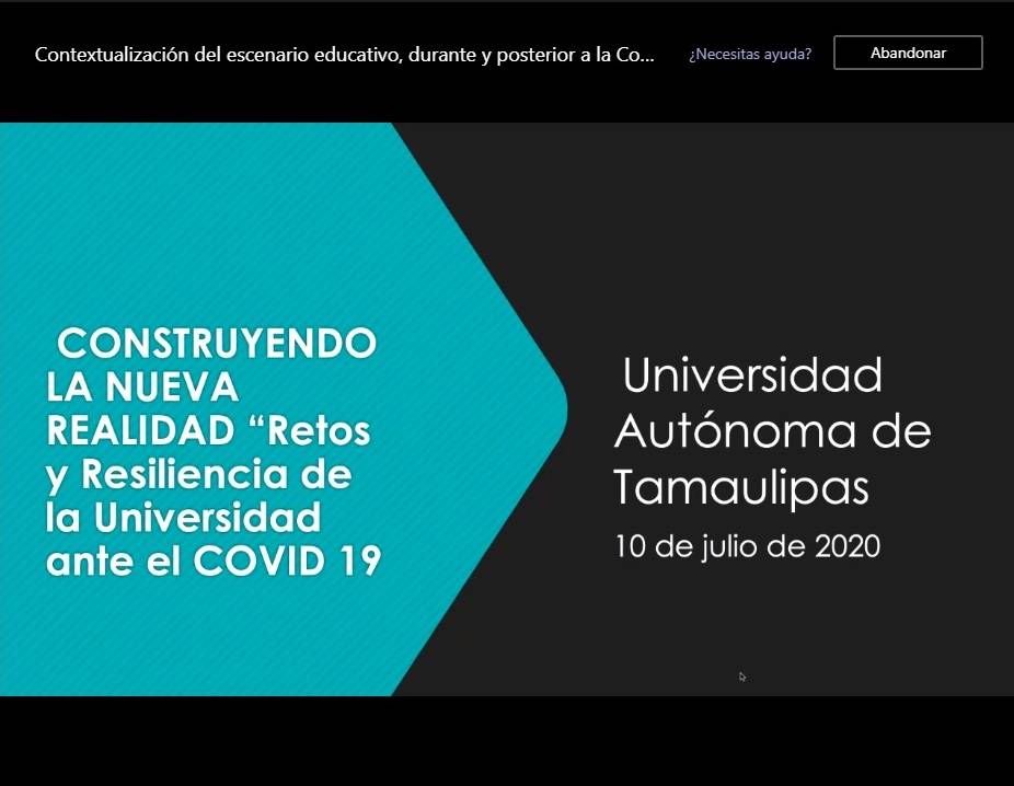 La Universidad Autónoma de Tamaulipas (UAT) a través del Colegio de Directores, organizó el foro "Construyendo la Nueva Realidad, retos y resiliencia de la universidad ante el COVID-19”, que contó con la participación a distancia del experto en educación, Dr. Carlos Ornelas Navarro.