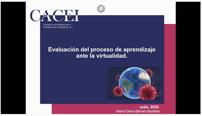 En el marco del “Seminario Diálogo entre Pares”, organizado por la Universidad Autónoma de Tamaulipas (UAT), la Directora General del Consejo de Acreditación de la Enseñanza de la Ingeniería, A. C. (CACEI), Dra. María Elena Barrera Bustillos, dictó la charla “Evaluación del Proceso de Aprendizaje ante la Virtualidad”.