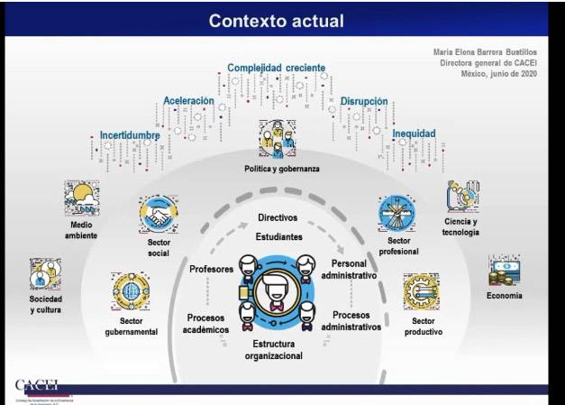 La titular del CACEI, subrayó que todo esto implica nuevas metodologías y nuevos escenarios de aprendizaje, porque “la nueva normalidad”, exige desarrollar habilidades usando herramientas tecnológicas, “implica también que le hemos perdido el miedo a la virtualidad, e implica competencias nuevas y las habilidades de colaboración son sustanciales”, puntualizó.