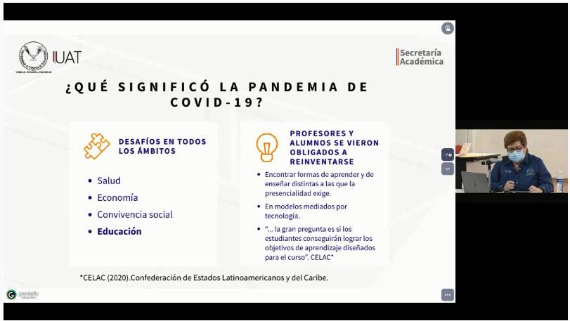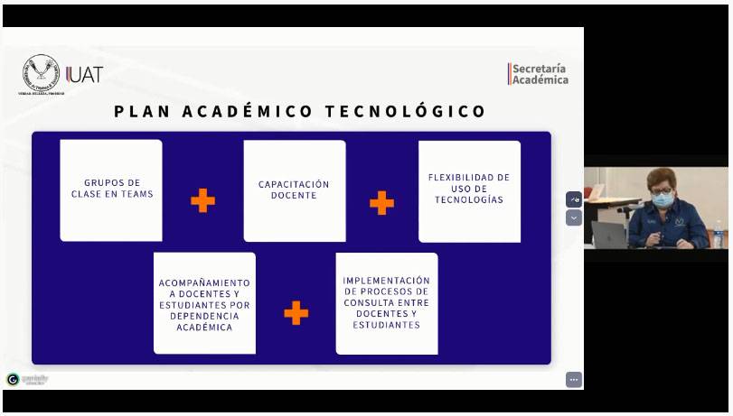 Con la presencia del Rector José Andrés Suárez Fernández, la Secretaria Académica de la UAT, Dra. Rosa Issel Acosta González expuso un informe del seguimiento a estas acciones, dentro de los temas: La dinámica de clase en la Modalidad Mixta, el Rol del Docente; y la Retroalimentación de los estudiantes sobre su experiencia de aprendizaje durante la contingencia.
