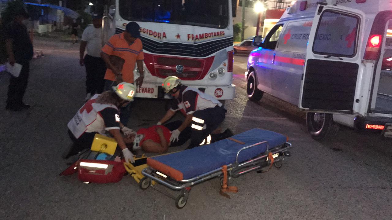 Tras ser impactada por la unidad de transporte público la mujer salió proyectada y cayó al suelo causándose diversas heeidas.