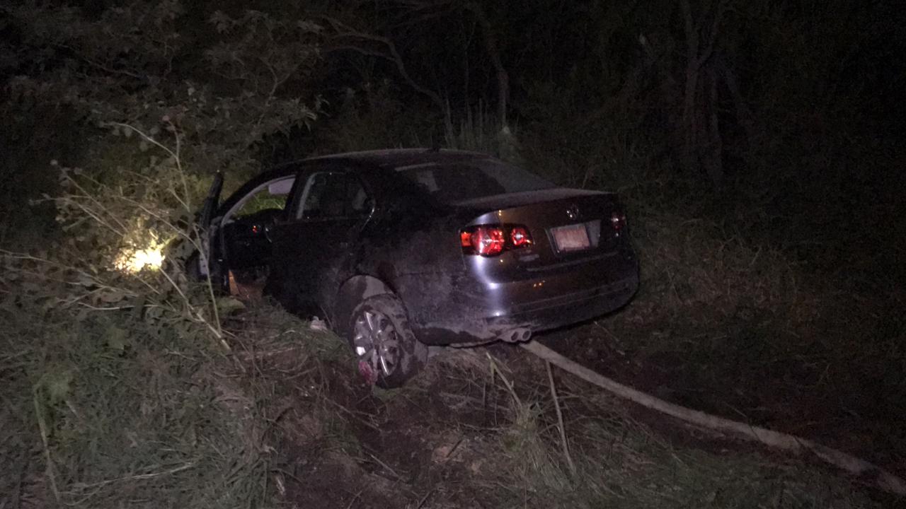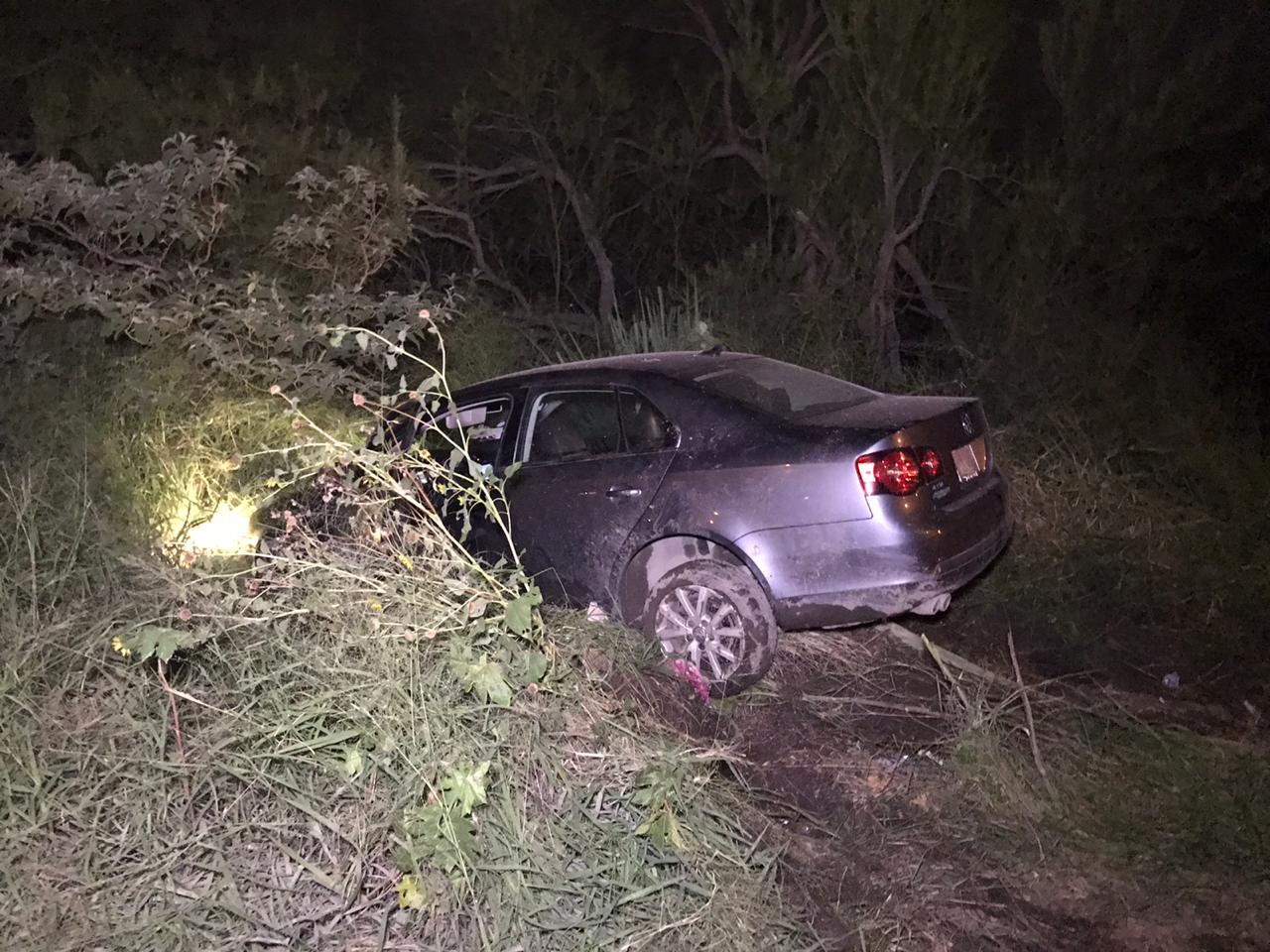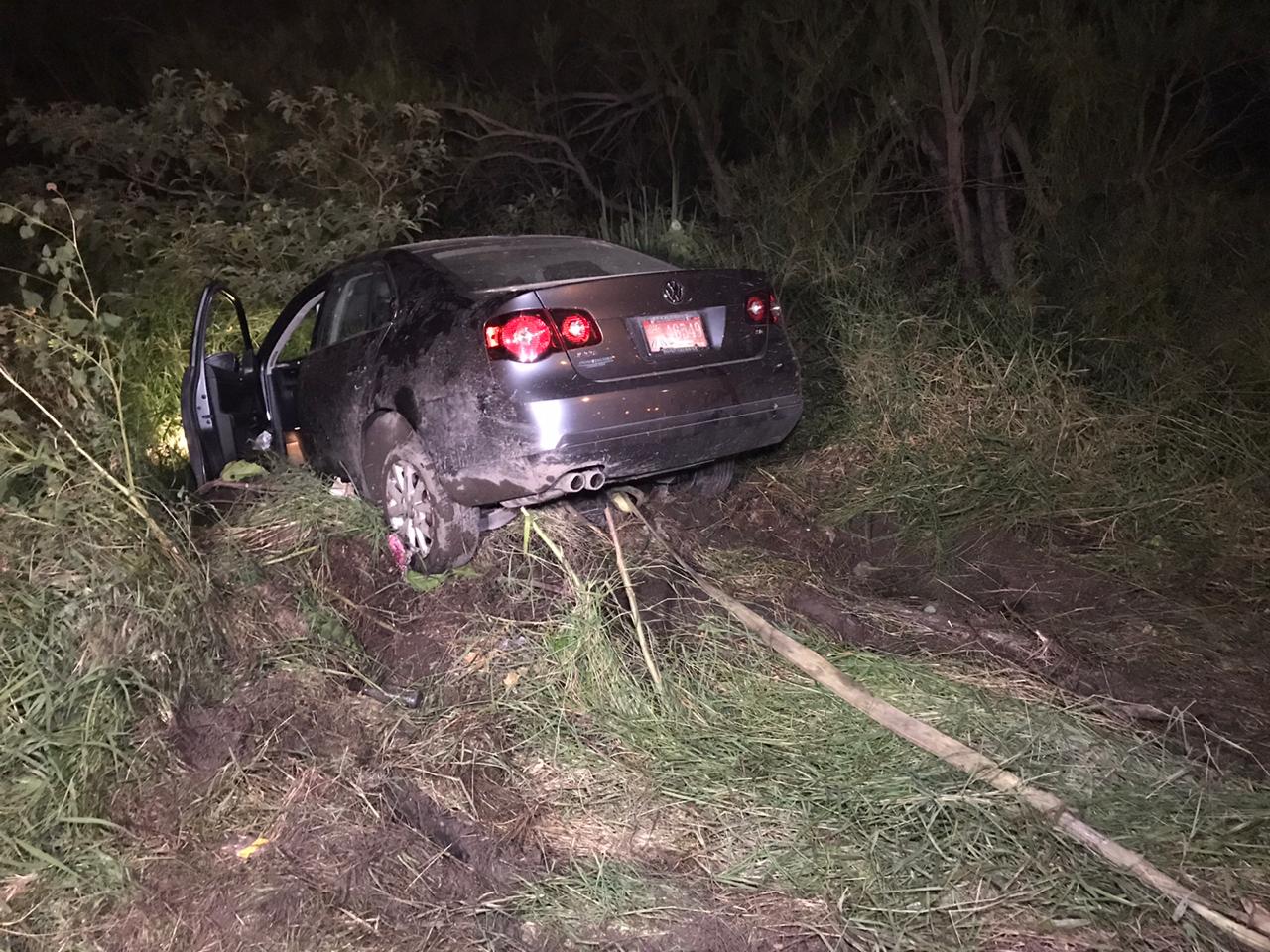 A la llegada de los elementos de la Dirección de Seguridad Tránsito y Vialidad en el lugar se encontraron un automóvil marca Volkswagen tipo Bora fuera de la superficie de rodamiento, atascado entre el fango y unos matorrales.
