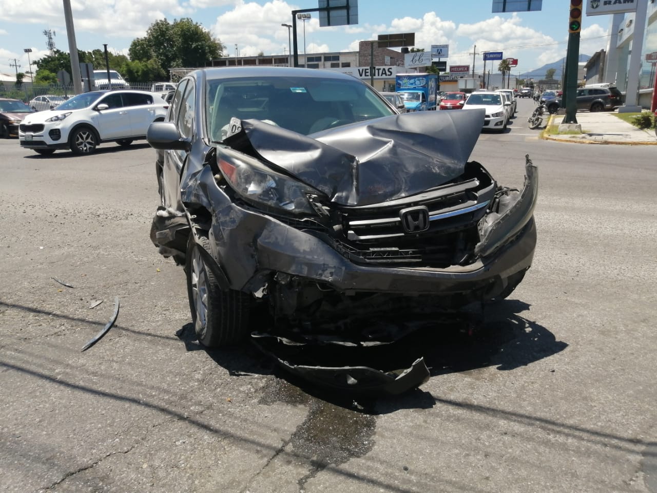 Presuntamente la camioneta Honda circulaba con preferencia de paso al marcarle el semáforo la luz verde, mientras que la patrulla de la Policía Investigadora acudía con torreta y sirena abiertas a atender un llamado de emergencia.