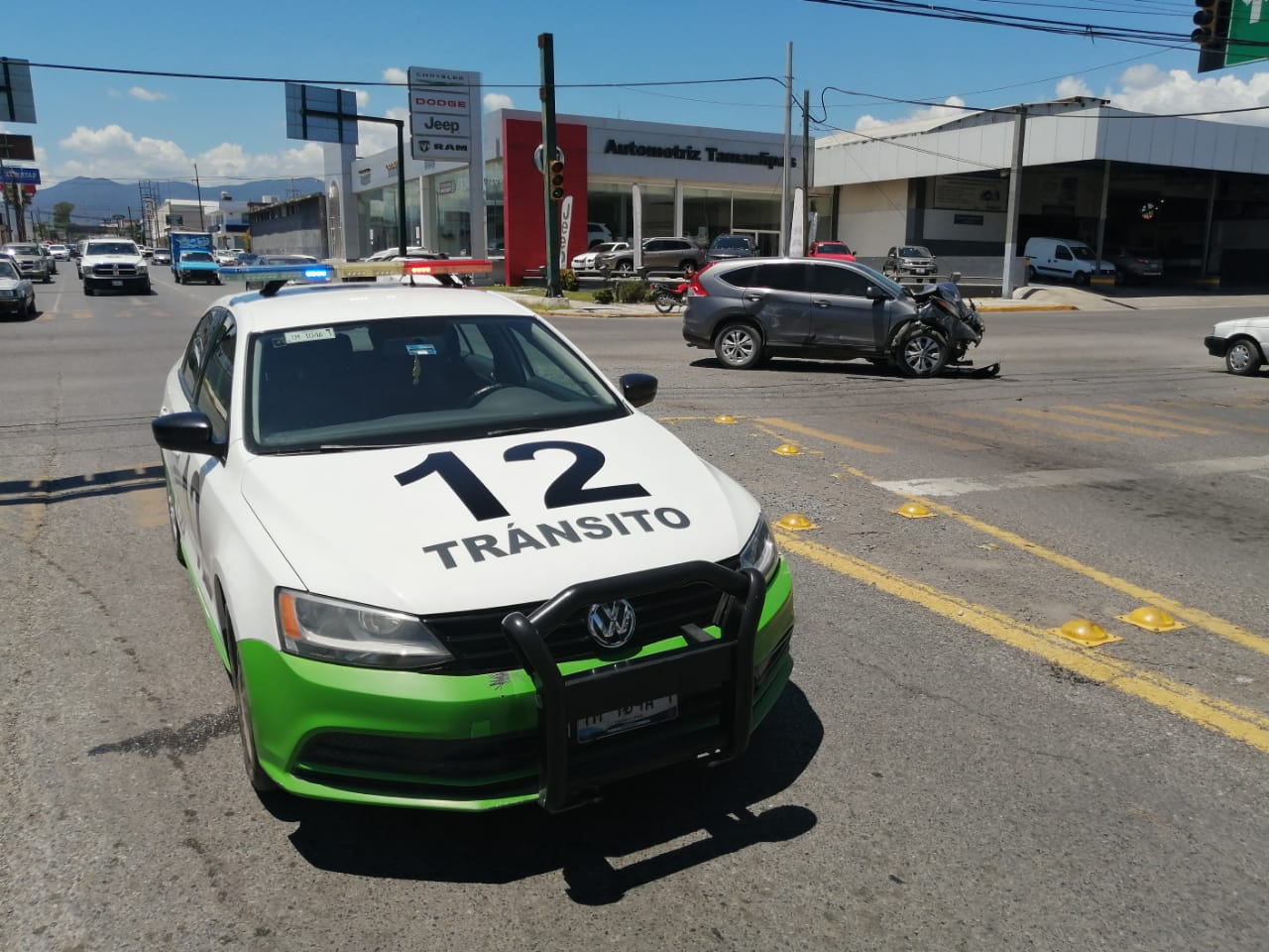 Al llegar al crucero con la calle Ocho la unidad de la Policía Investigadora es impactada por una camioneta marca Honda tipo CRV.