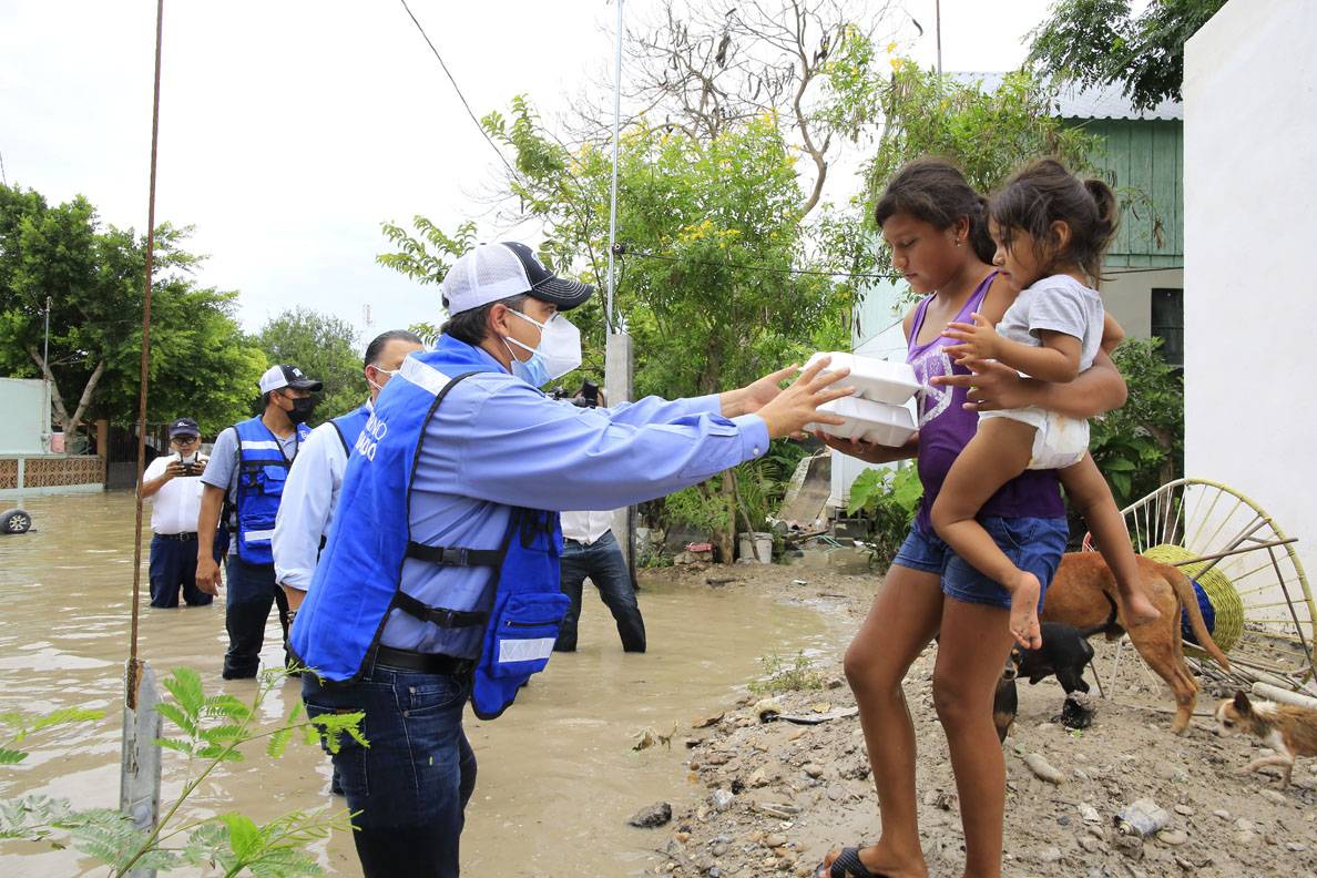 El mandatario atendió y escuchó a familias damnificadas en las colonias 20 de Noviembre, Unidad Obrera y Lázaro Cárdenas, que han sido severamente afectadas por las inundaciones que dejó a su paso el meteoro.