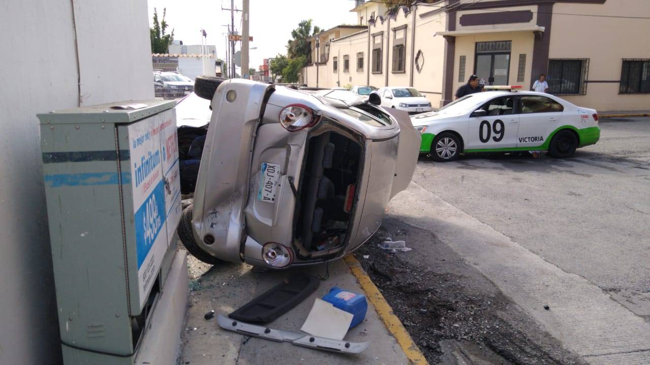 Por ignorar una señal fija de alto, el conductor de un automóvil compacto ocasionó un aparatoso choque con volcadura en la zona centro de esta ciudad capital.