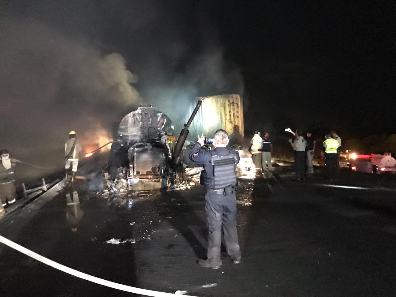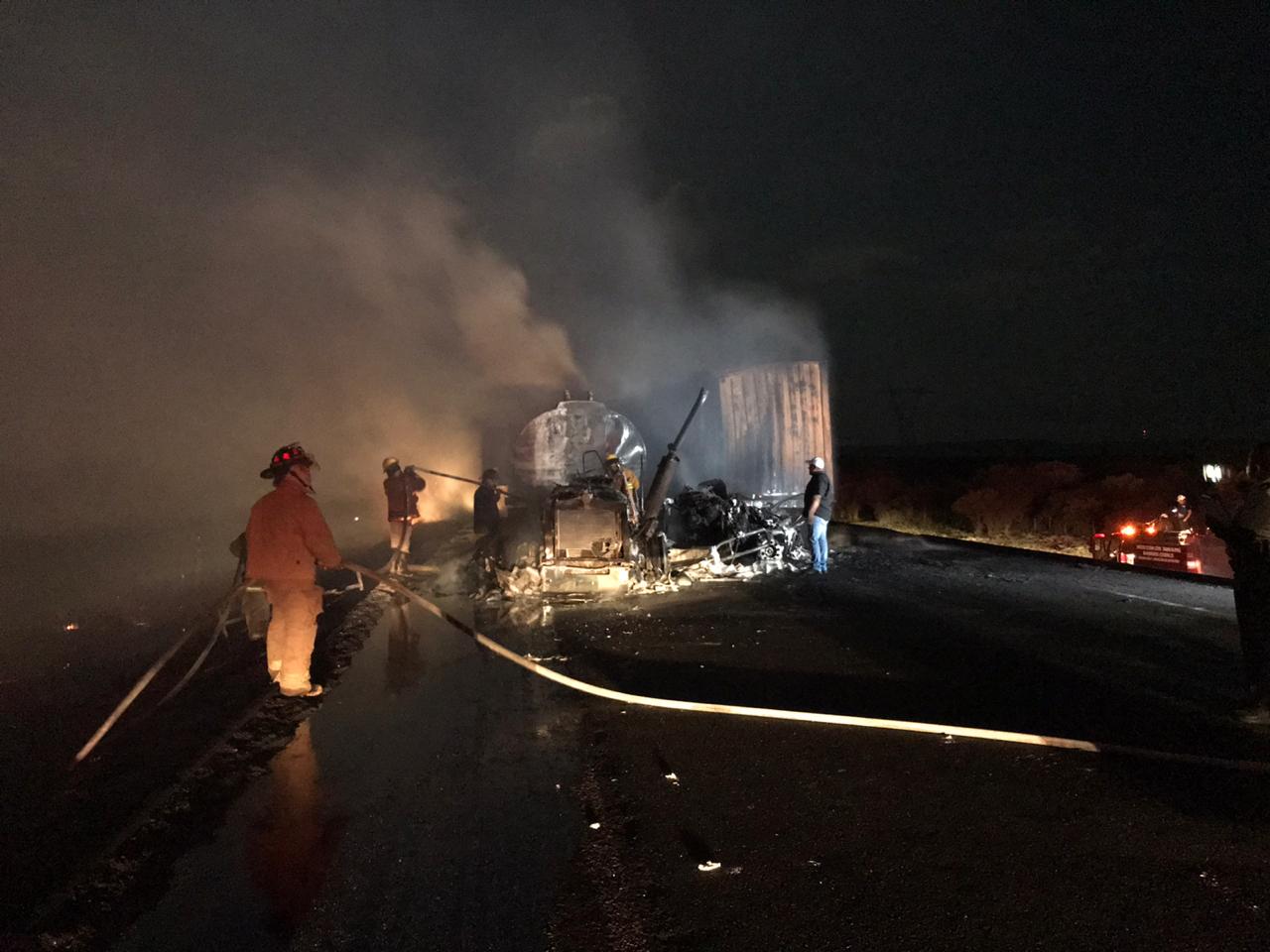Millonarias pérdidas dejó como saldo un choque con incendio entre dos tráileres ocurrido en la carretera Victoria Zaragoza.