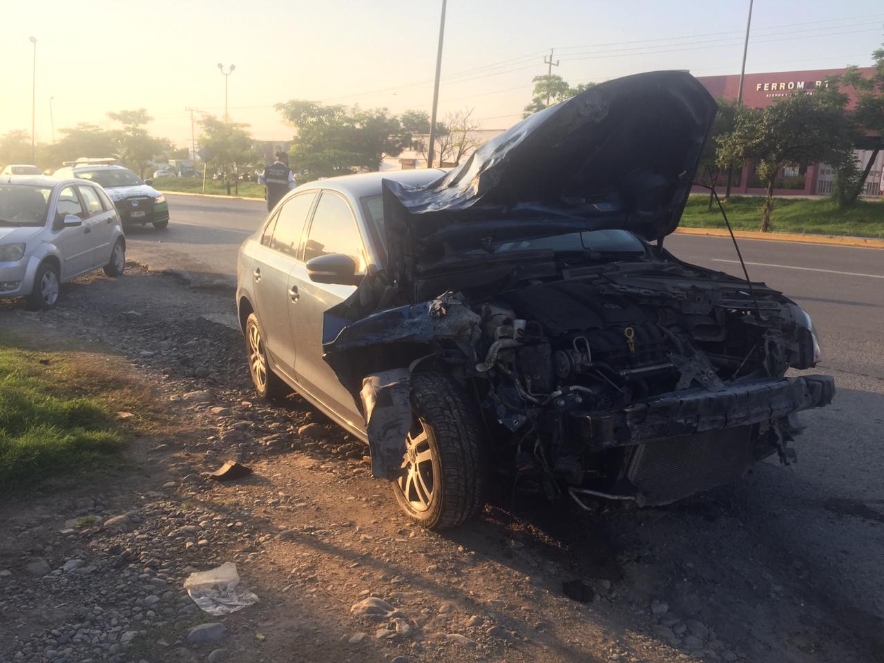 Fue la mañana de este miércoles cuando un automóvil marca Volkswagen tipo Jetta que circulaba por el libramiento Naciones Unidas en sentido de oriente a poniente se estrelló contra la parte posterior de una camioneta marca Ford tipo Ranger que circulaba en el mismo sentido.