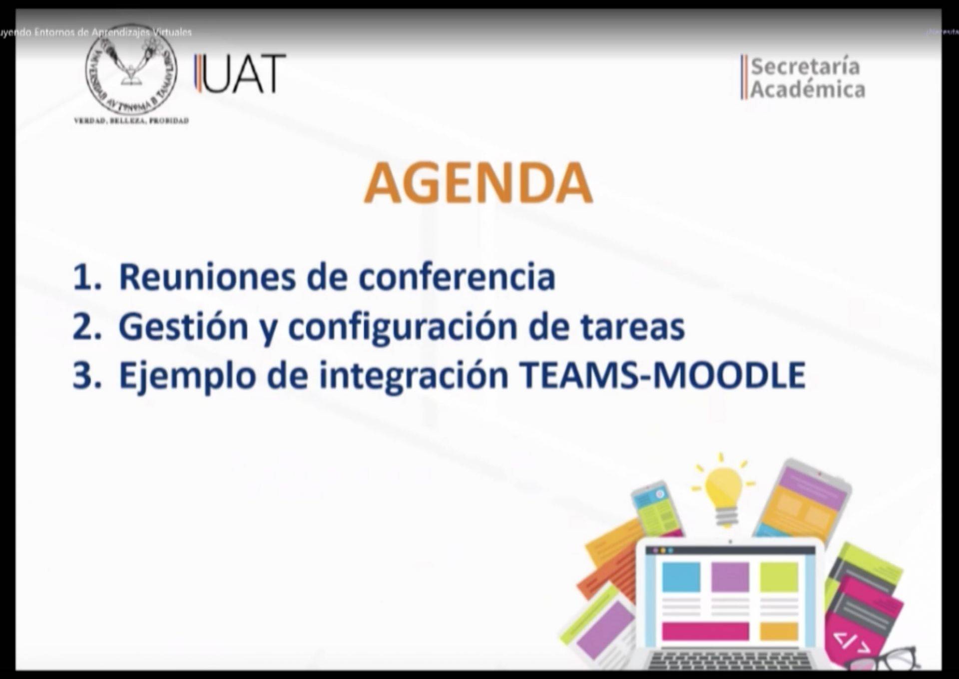 La planta docente de la máxima casa de estudios del estado concluyó así el segundo bloque del curso bajo el tema "Construcción de Entornos de Aprendizaje Virtuales", implementando el diseño y desarrollo de la Unidad de Enseñanza Aprendizaje e Impartición de Cátedra orientado al uso de las herramientas y tecnologías para las clases en Teams correspondientes al periodo 2020-3.