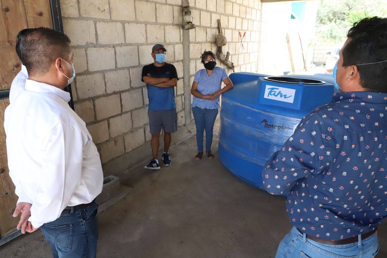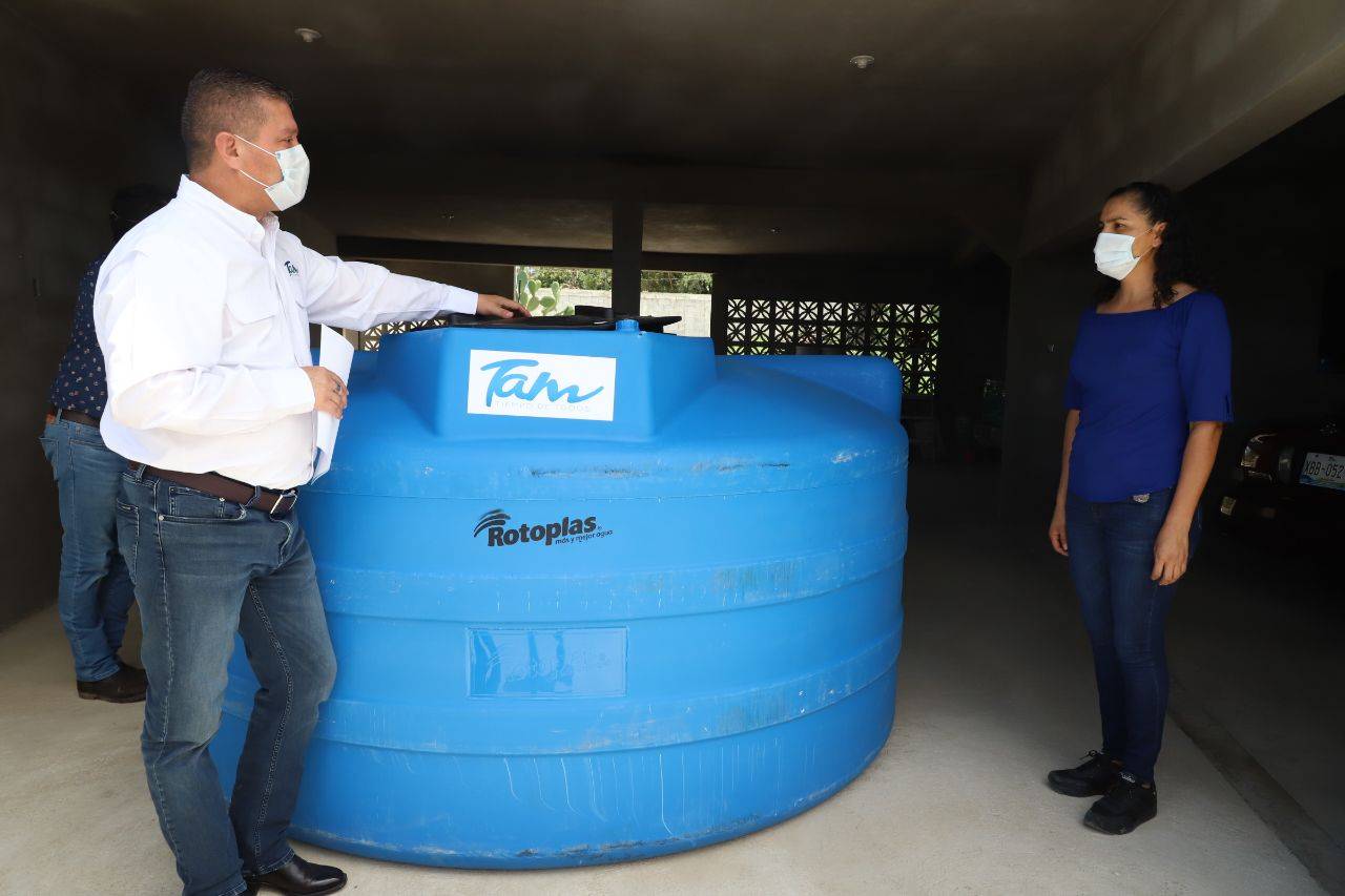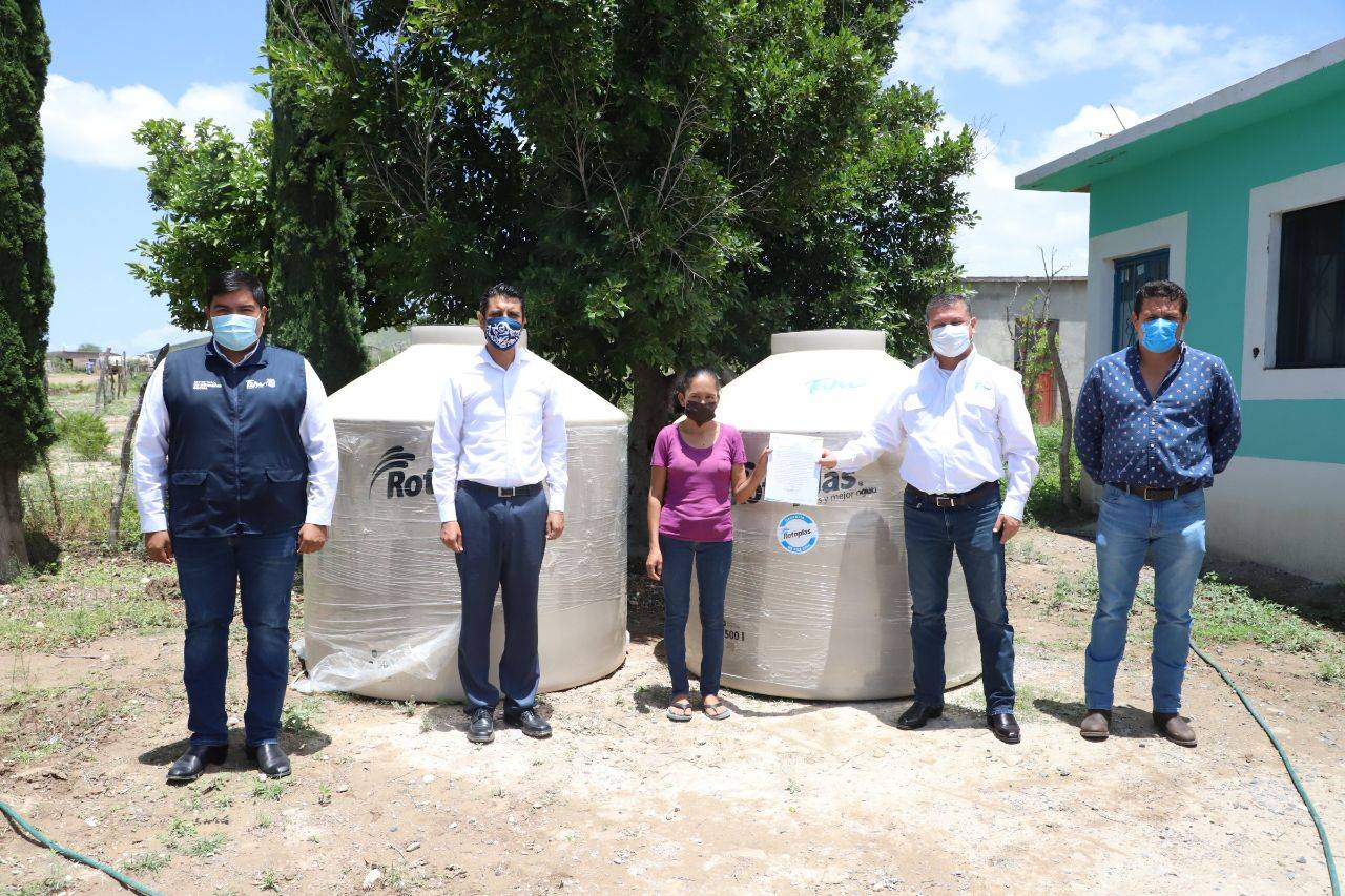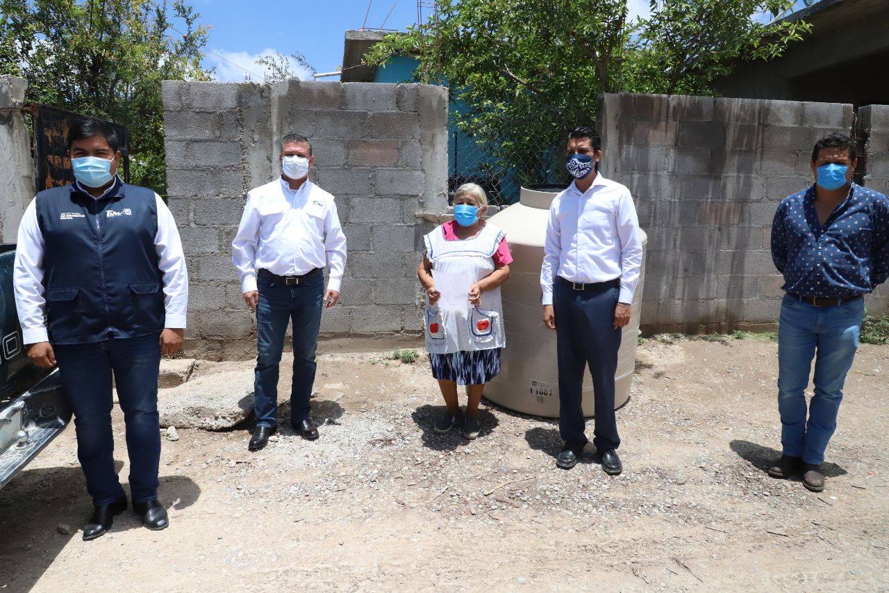El titular de SEBIEN, Rómulo Garza Martínez entregó casa por casa un total de 30 tinacos a 23 familias tultecas, lo que les permitió un ahorro del 30 al 40%, gracias al convenio firmado entre el Gobierno del Estado y la Congregación Mariana Trinitaria (CMT).