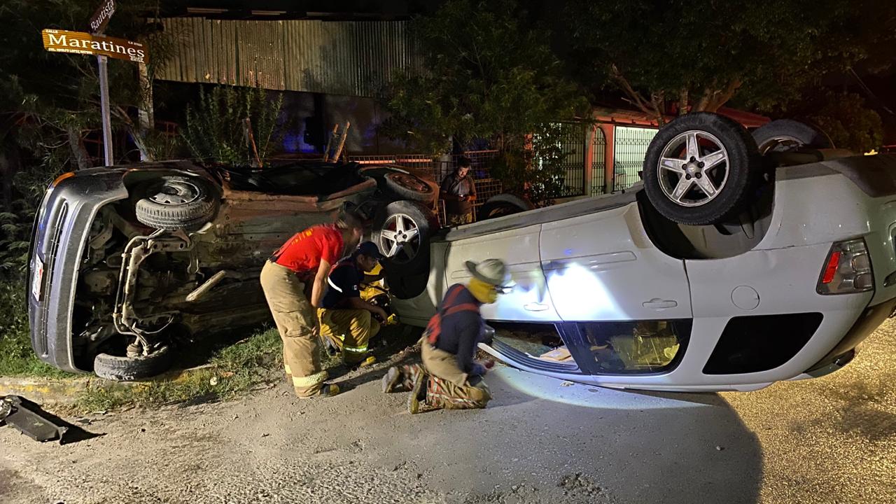 Por ignorar una señal fija de alto al conductor de una camioneta ocasionó un choque que terminó en una doble volcadura.
