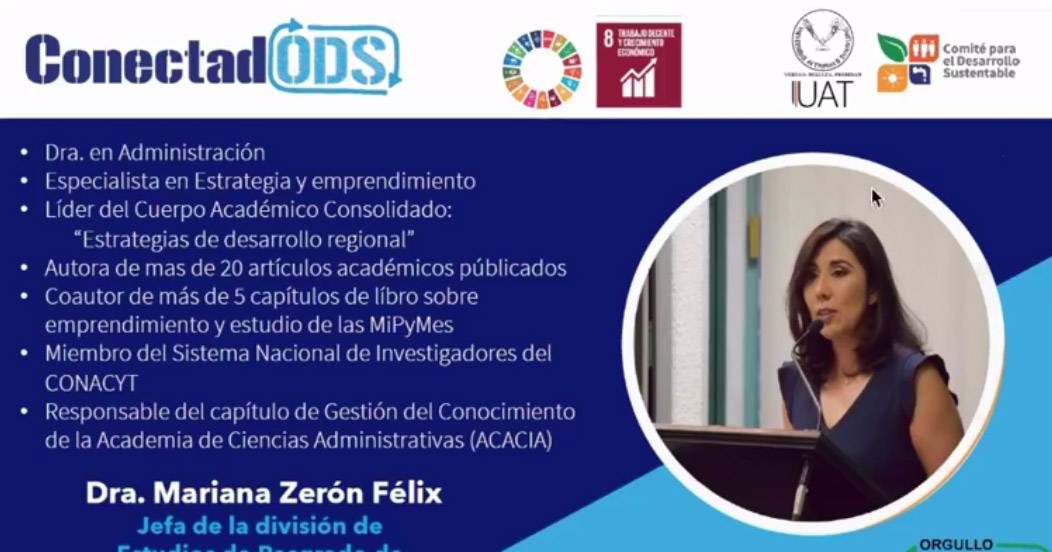 La Universidad Autónoma de Tamaulipas (UAT) trabaja en la formación de profesionales con una nueva visión de negocios, que privilegien la creación de más empresas socialmente responsables, aseguró la investigadora, Dra. Mariana Zerón Félix, durante su participación en el programa “ConectadODS”, del Comité para el Desarrollo Sustentable de esta casa de estudios.