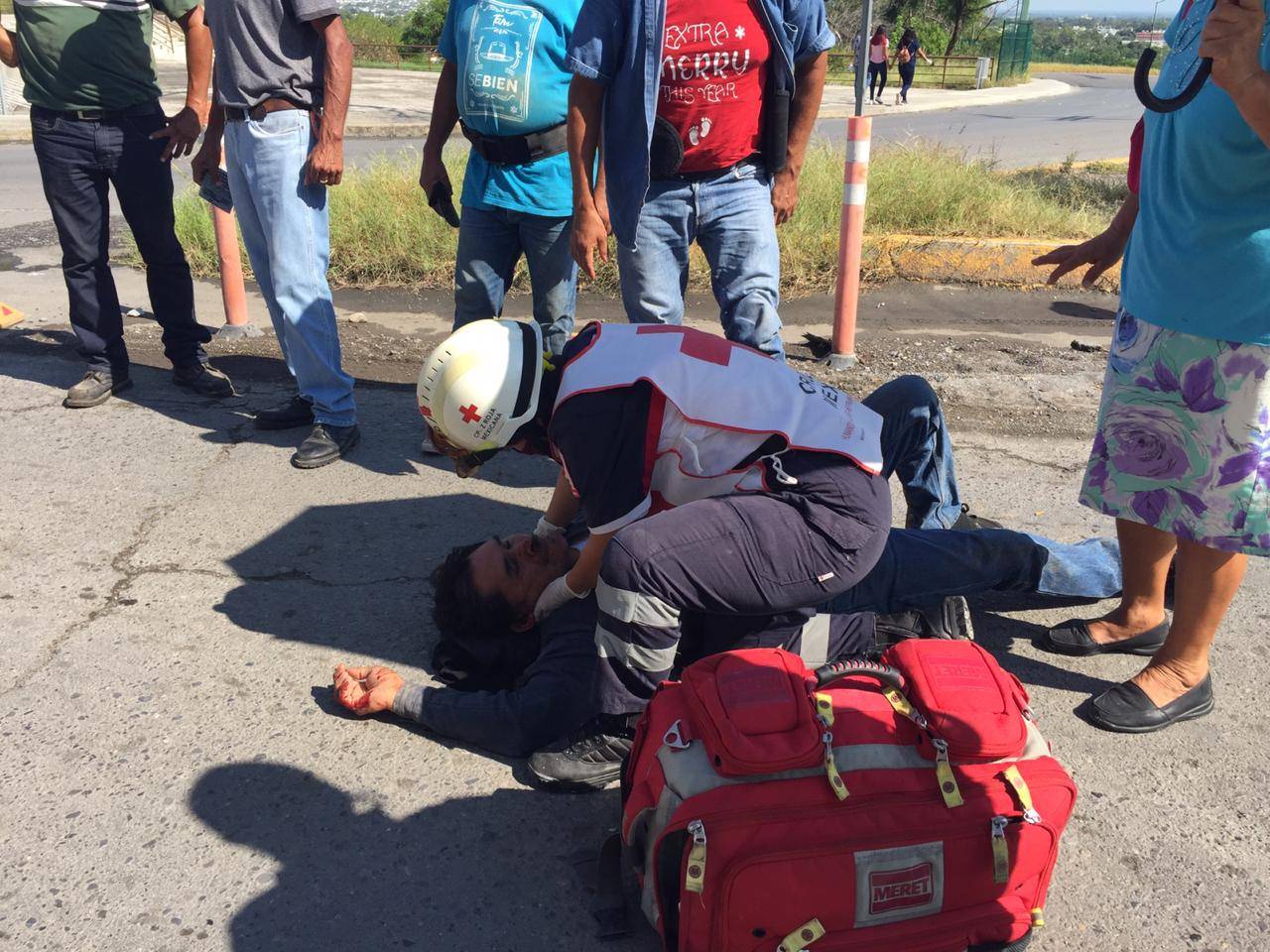 Al ser valorado, los técnicos en urgencias médicas determinaron que el lesionado, una persona del sexo masculino de aproximadamente 50 años de edad sufrió una herida en la región craneal y probable fractura de su hombro derecho.