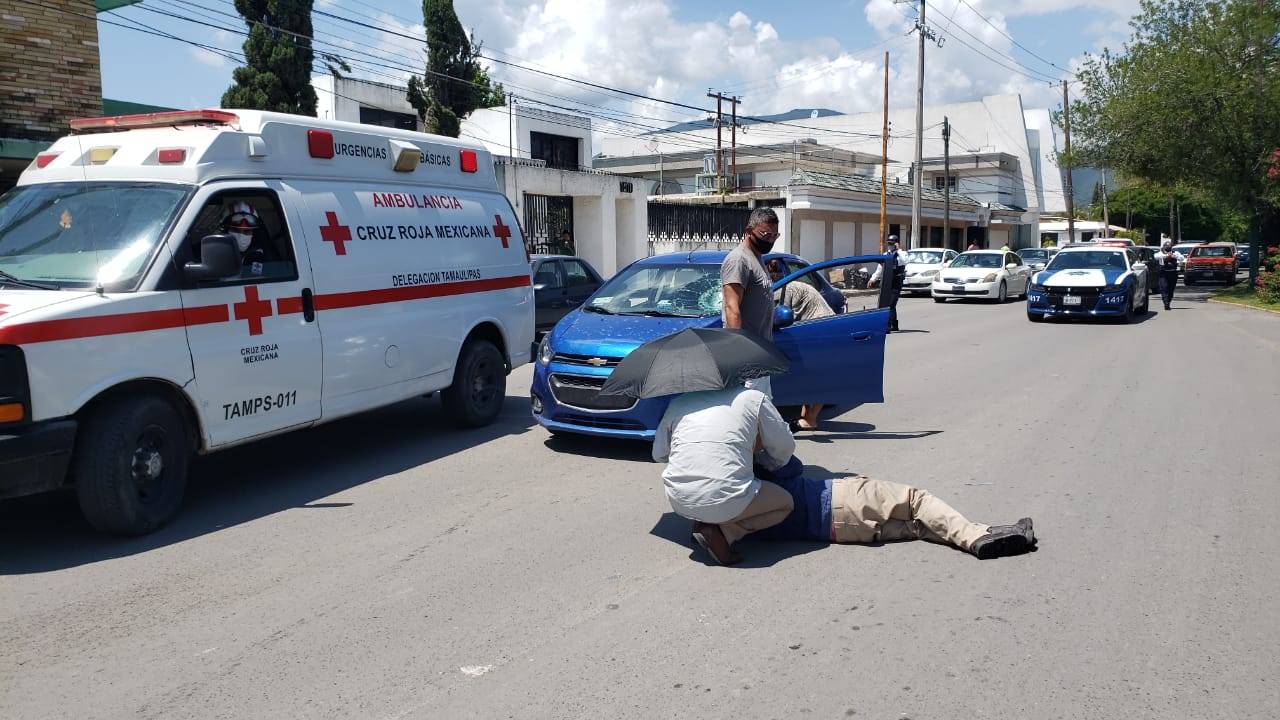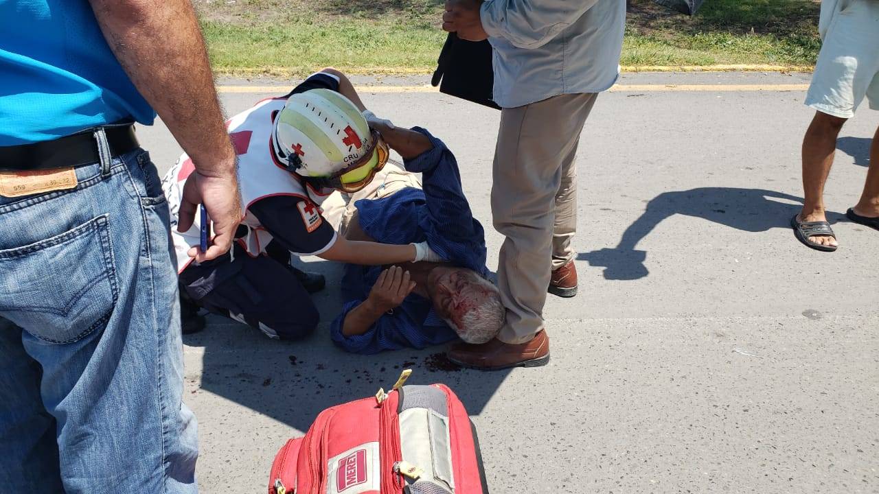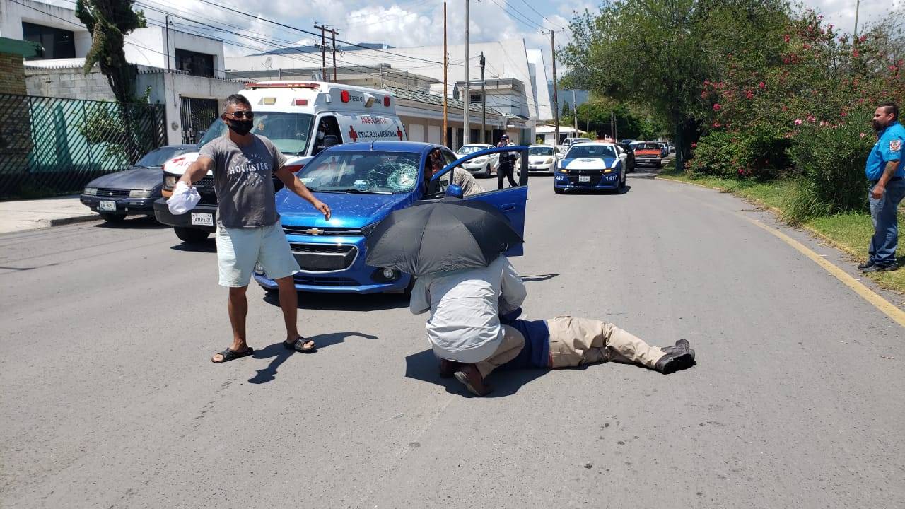 La persona de la tercera edad al ser impactada por el automóvil salió proyectada y tras golpearse contra el parabrisas del vehículo cayó al suelo resultando con diversas heridas.