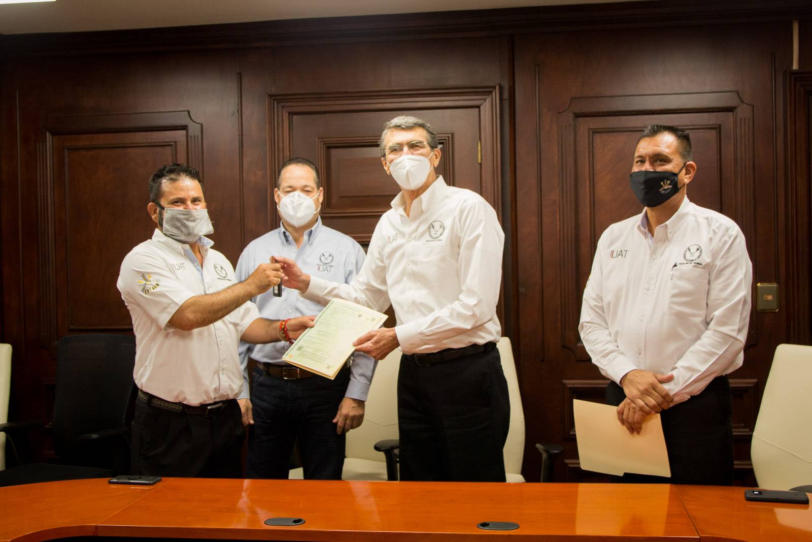 En breve ceremonia efectuada en las oficinas de la Rectoría en esta capital, el Ing. Suárez Fernández llevó a cabo la entrega simbólica de los vehículos a los docentes de las zonas norte, centro y sur de esta casa de estudios, que resultaron ganadores del sorteo realizado en beneficio de los académicos universitarios sindicalizados.