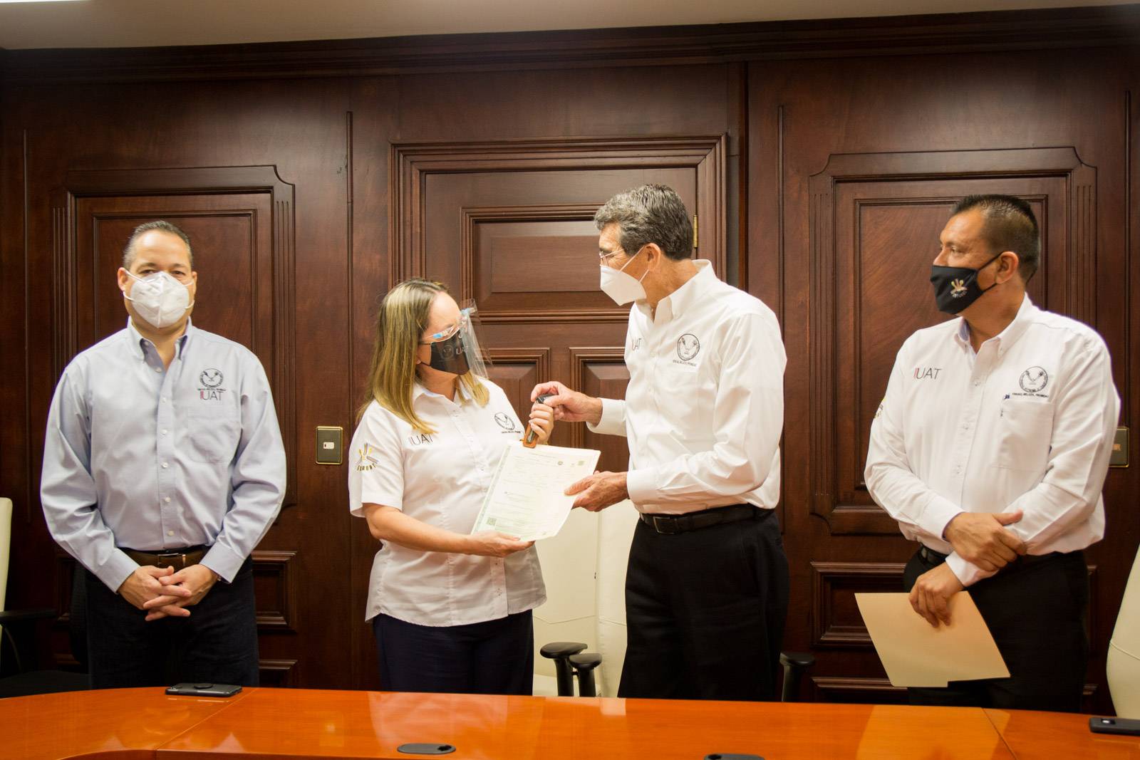 Por su parte, el Secretario General Estatal del SUTAUAT, Luis Gerardo Galván Velasco agradeció al Rector José Andrés Suárez Fernández por el cumplimiento de apoyos y beneficios que tienen los docentes en la Universidad.