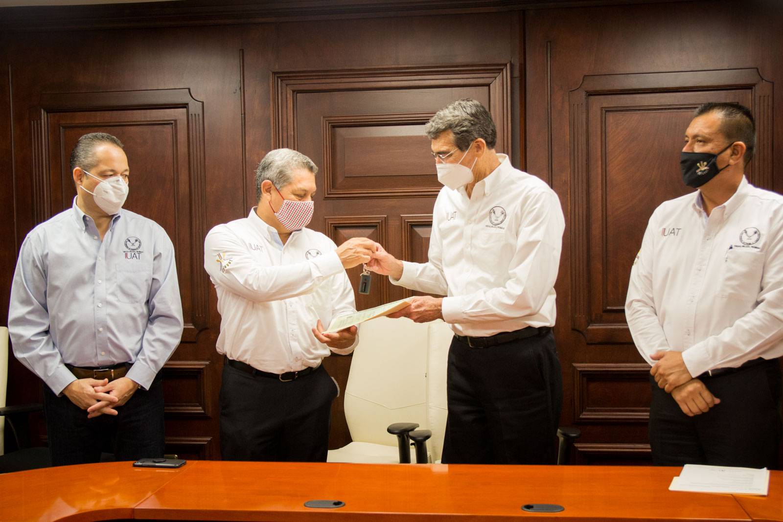En cumplimiento a compromisos establecidos en el contrato colectivo laboral con el Sindicato Único de Trabajadores Académicos de la Universidad Autónoma de Tamaulipas (SUTAUAT), el Rector Ing. José Andrés Suárez Fernández entregó los vehículos que fueron sorteados entre el personal docente durante el 16 aniversario de la fundación de esta organización sindical.