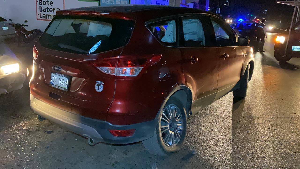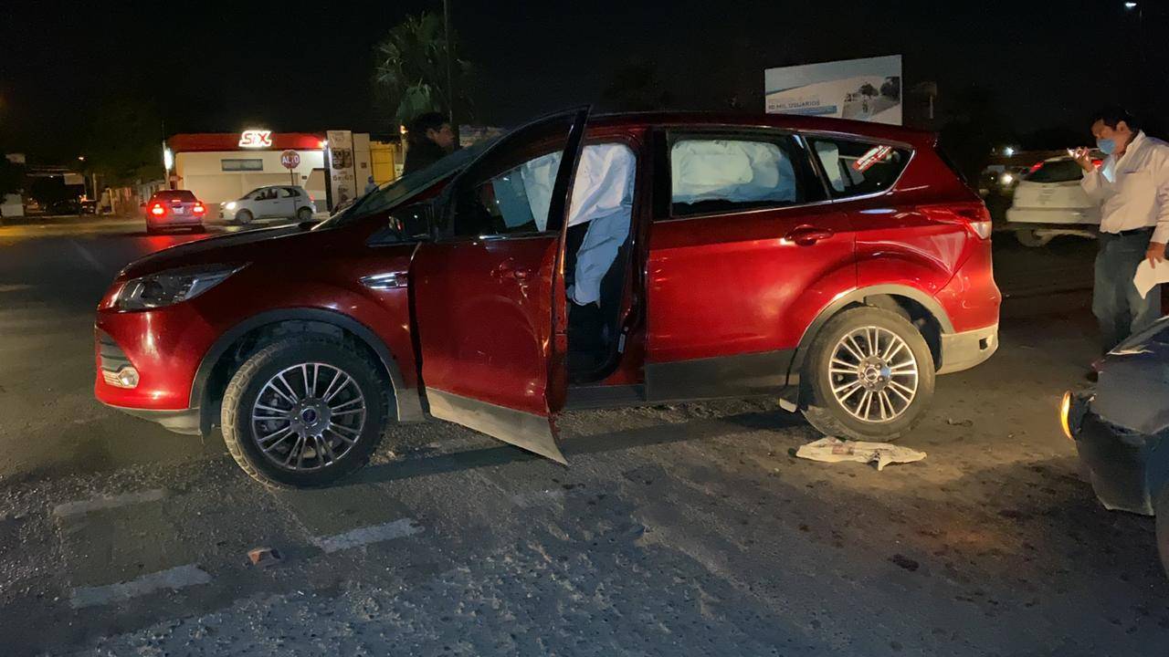 Tras ser impactada por el costado del lado del acompañante la camioneta Escape salió proyectada y se estrelló contra otro automóvil marca Nissan tipo Tsuru en color gris que se encontraba haciendo alto sobre la calle Bravo en sentido de oriente a poniente.