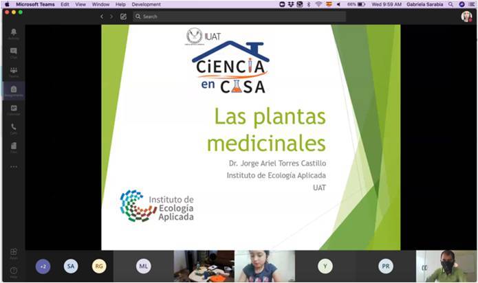 Los talleres fueron impartidos por los expertos del Instituto de Ecología Aplicada (IEA), el Dr. Jorge Ariel Torres Castillo y la Dra. Griselda Gaona García, a través de la plataforma colaborativa Microsoft Teams.