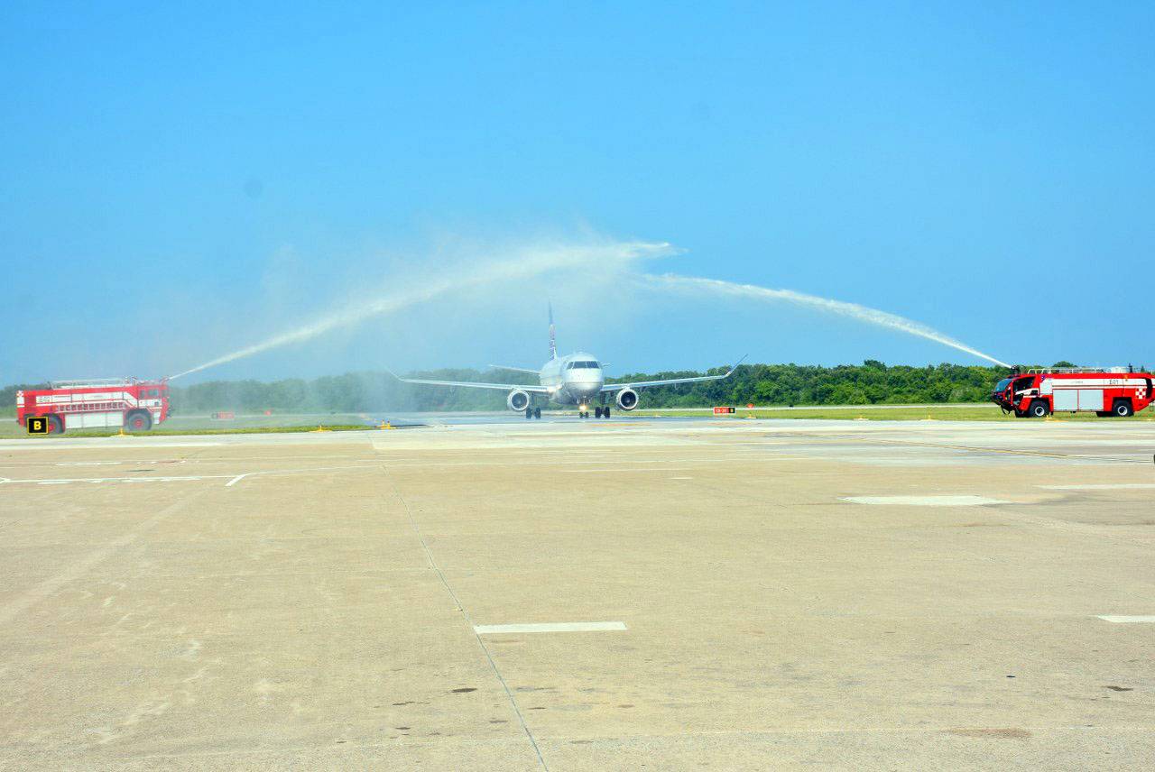 Mediante una sencilla ceremonia, personal del Aeropuerto Internacional de Tampico “Francisco Javier Mina”, encabezados por su administrador, Mauricio Moncada Martínez, dieron la bienvenida al vuelo que aterrizó a tiempo, proveniente del Aeropuerto Intercontinental George Bush.
