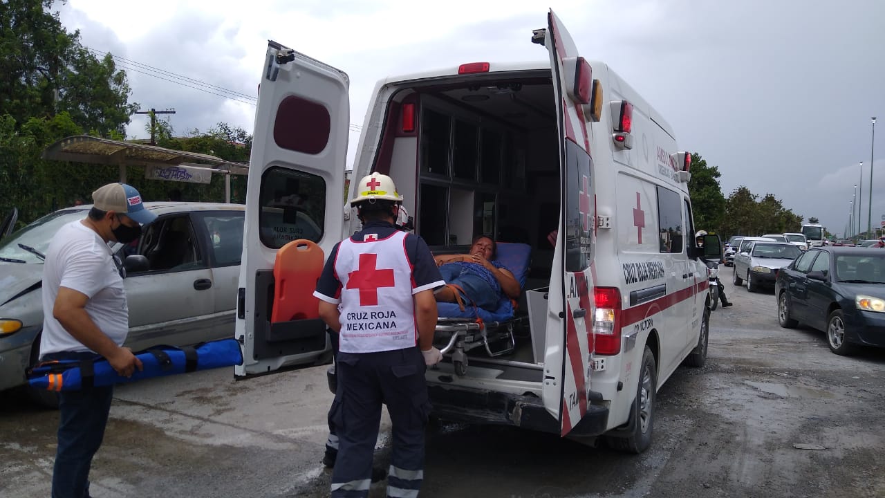 Tras reportarse el choque múltiple al número de emergencias 911, para atender a las personas lesionadas entre los cuales se encontraban tres mujeres y dos menores de edad, al lugar acudieron tres ambulancias.