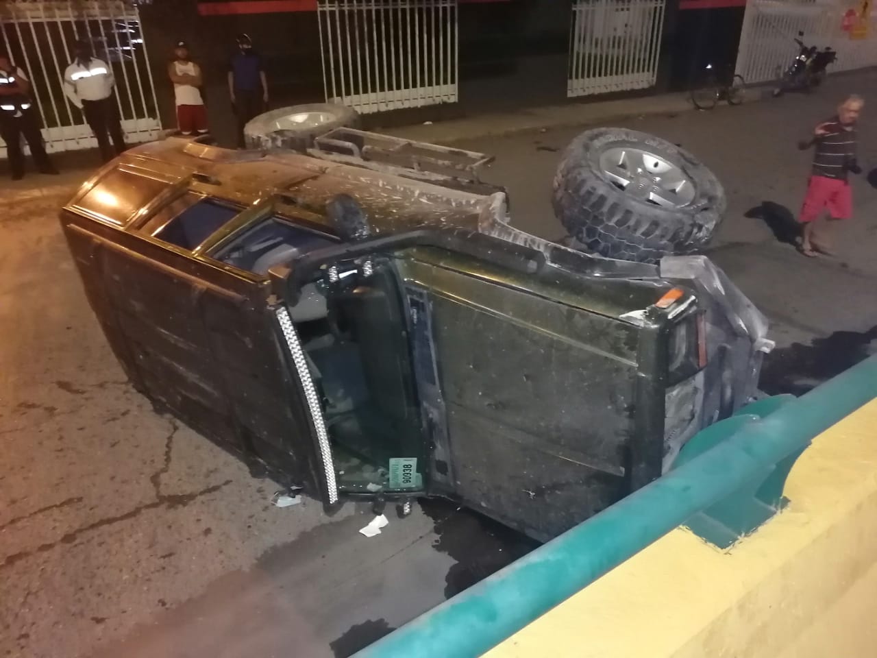 Por conducir en estado de ebriedad un conductor terminó volcado después de estrellar la camioneta que tripulaba contra la "Joroba".