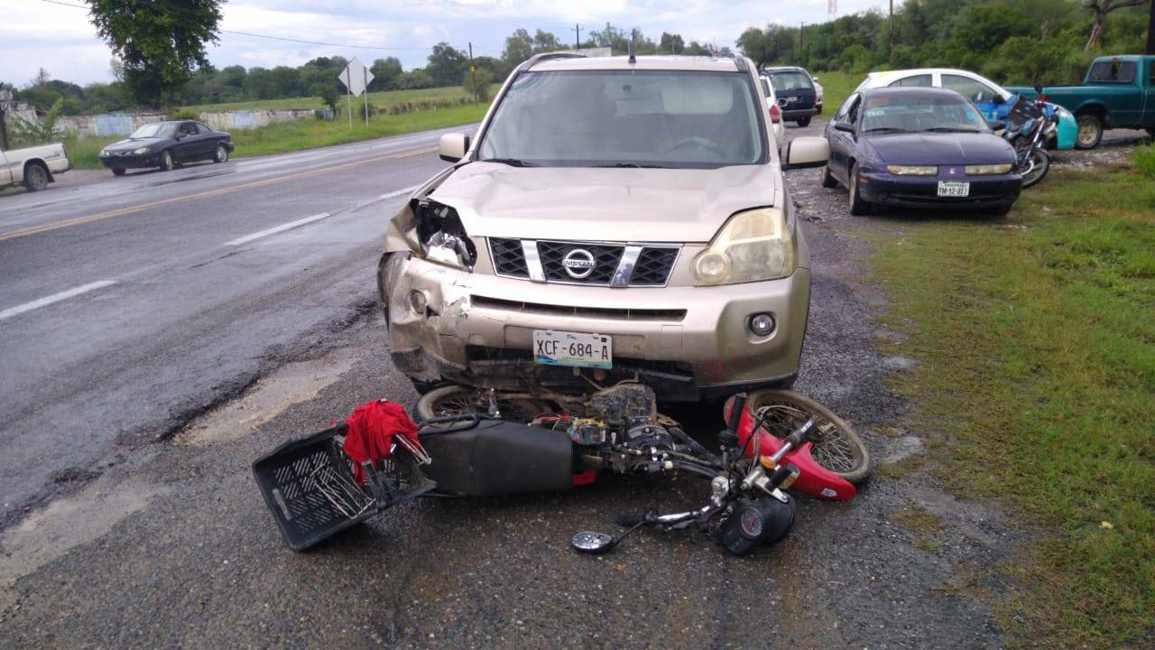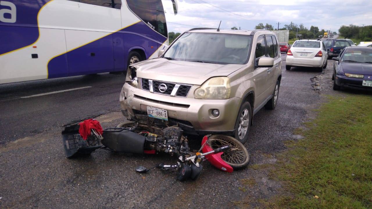 Un menor de edad que iba a bordo de una motocicleta terminó hospitalizado después de ser impactado y "arrastrado" por una camioneta en la carretera Victoria Monterrey.