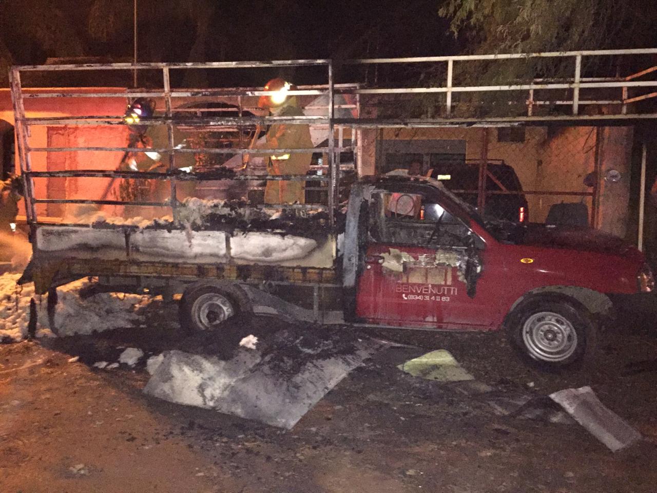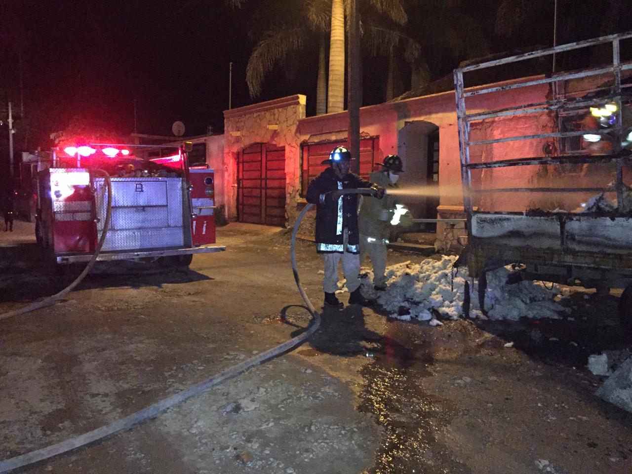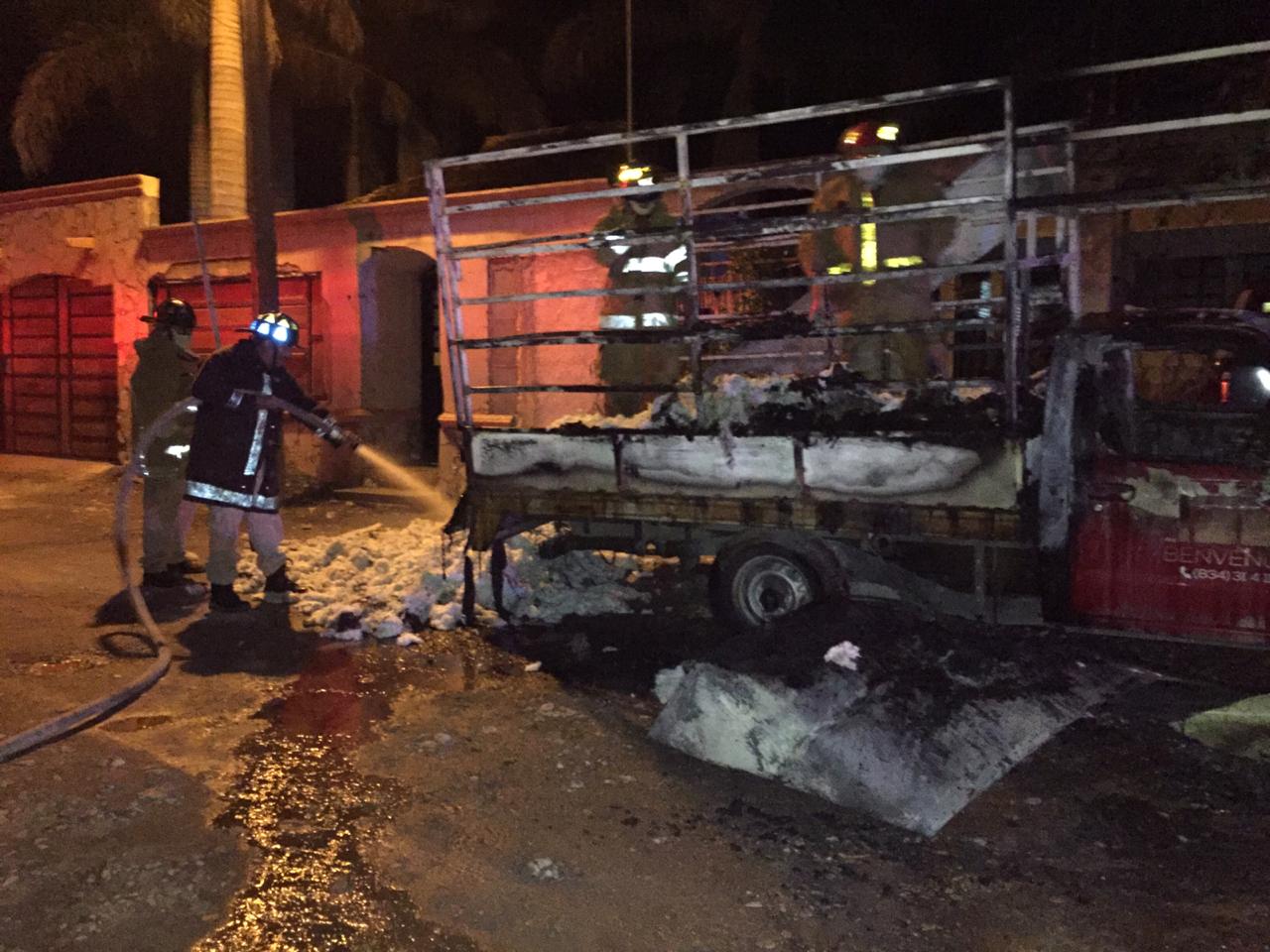 El incendio de un vehículo dejó cuantiosos daños materiales al ser consumida por el fuego una gran cantidad de hule espuma que se encontraba en la caja de una camioneta.