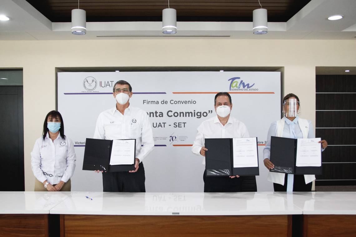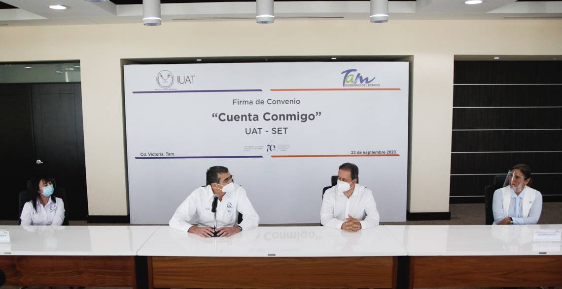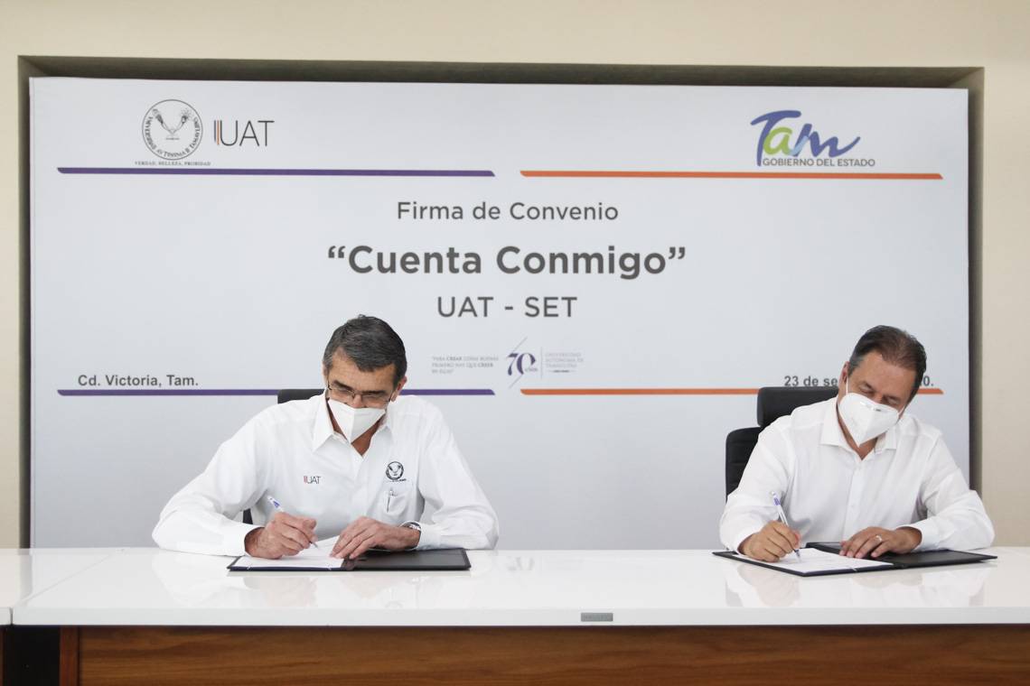 En una suma de esfuerzos que busca fortalecer la educación de nivel primaria, se firmó el convenio del programa de servicio social “Cuenta Conmigo”, impulsado por la Universidad Autónoma de Tamaulipas (UAT) y la Secretaría de Educación en Tamaulipas (SET).