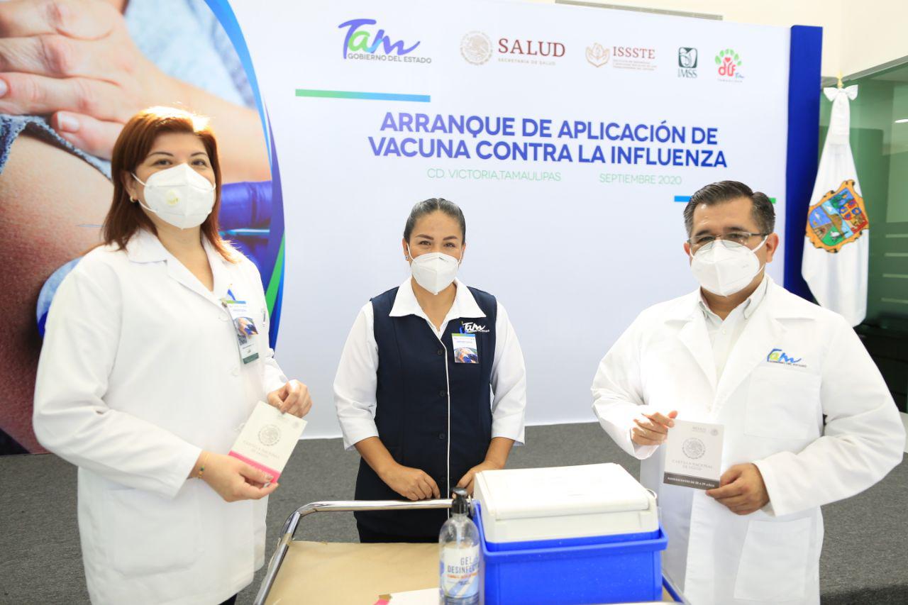CIUDAD VICTORIA, Tamaulipas.- Ante la proximidad de una temporada invernal atípica, en la que se prevé la co circulación de los virus SARS-COV2 que provoca el COVID-19 y el de la influenza, el Gobierno de Tamaulipas se convirtió hoy en el primero en todo el país en activar la campaña intensiva de vacunación antiinfluenza 2020.