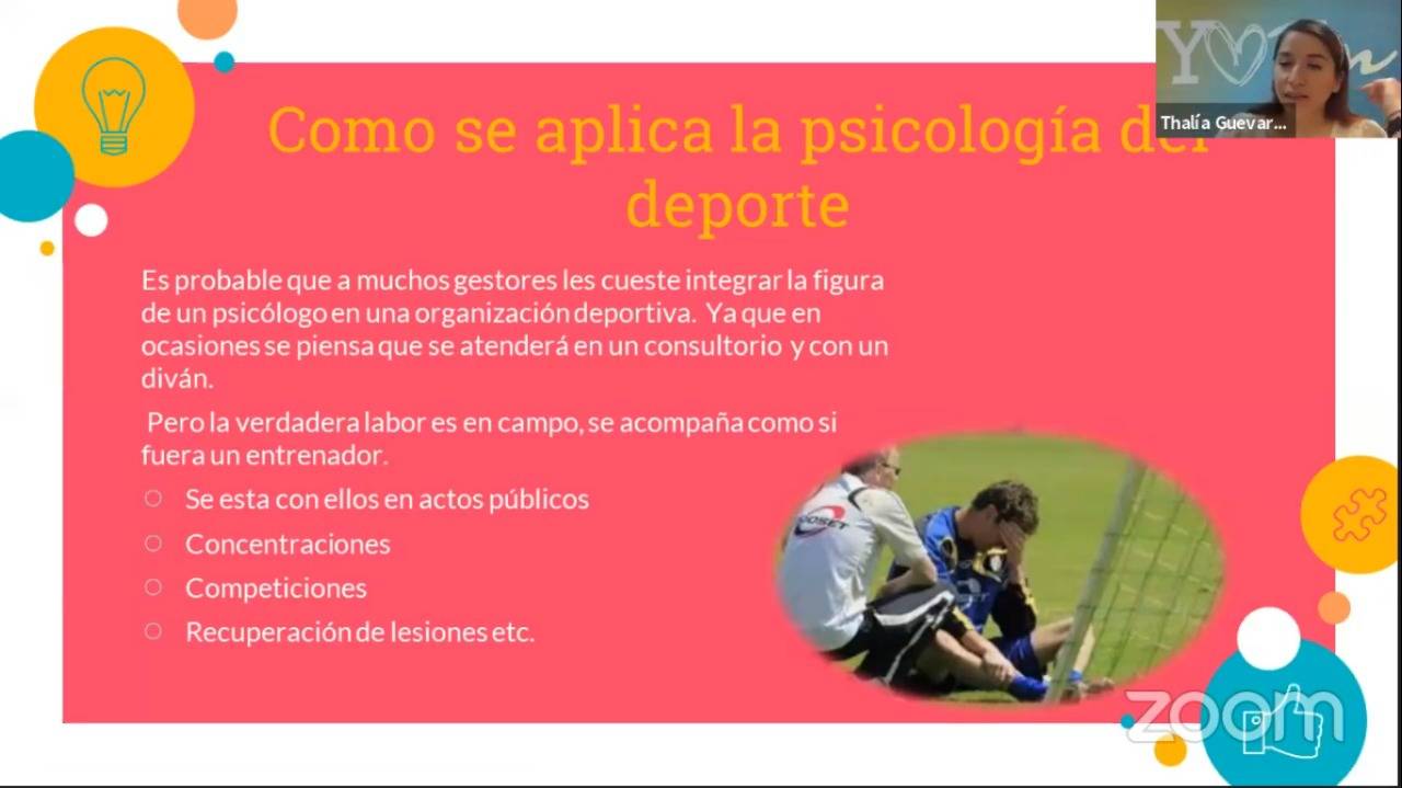Las presentaciones fueron específicas en temas de interés deportivo, como acondicionamiento físico, psicología deportiva, fisioterapia, motivación, imagen, nueva realidad, éxito y nutrición.