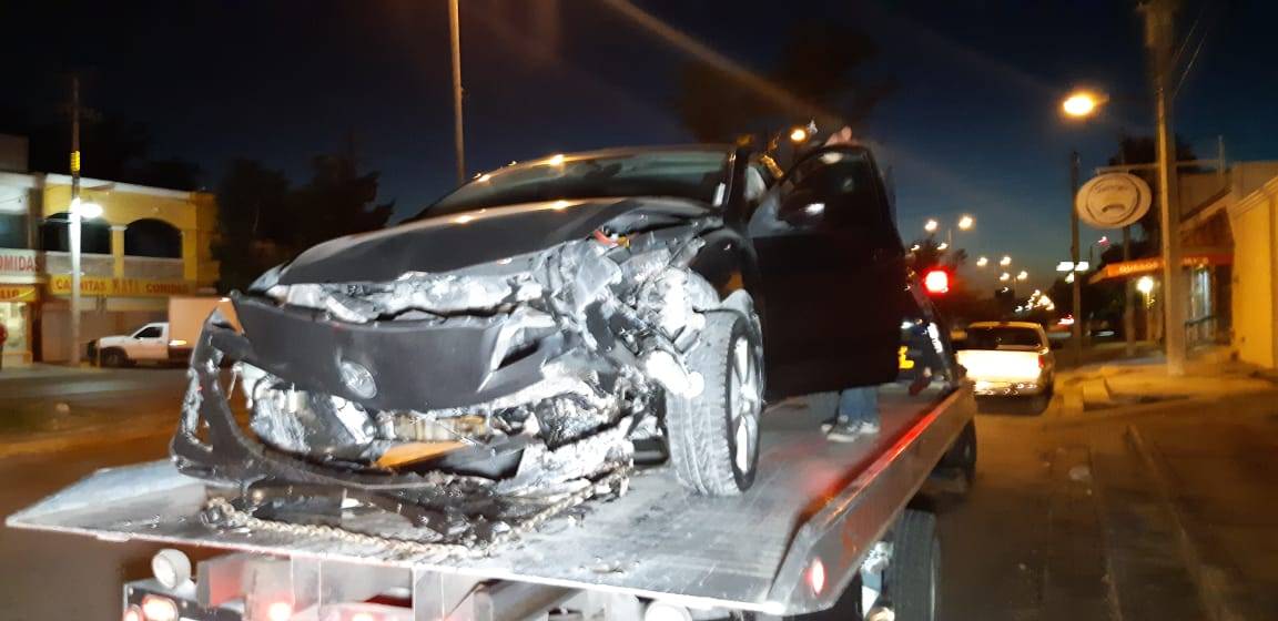 El accidente ocurrió cuando un automóvil Mazda 3 circulaba por el Bulevar Familia Rotaria en sentido de poniente a oriente.