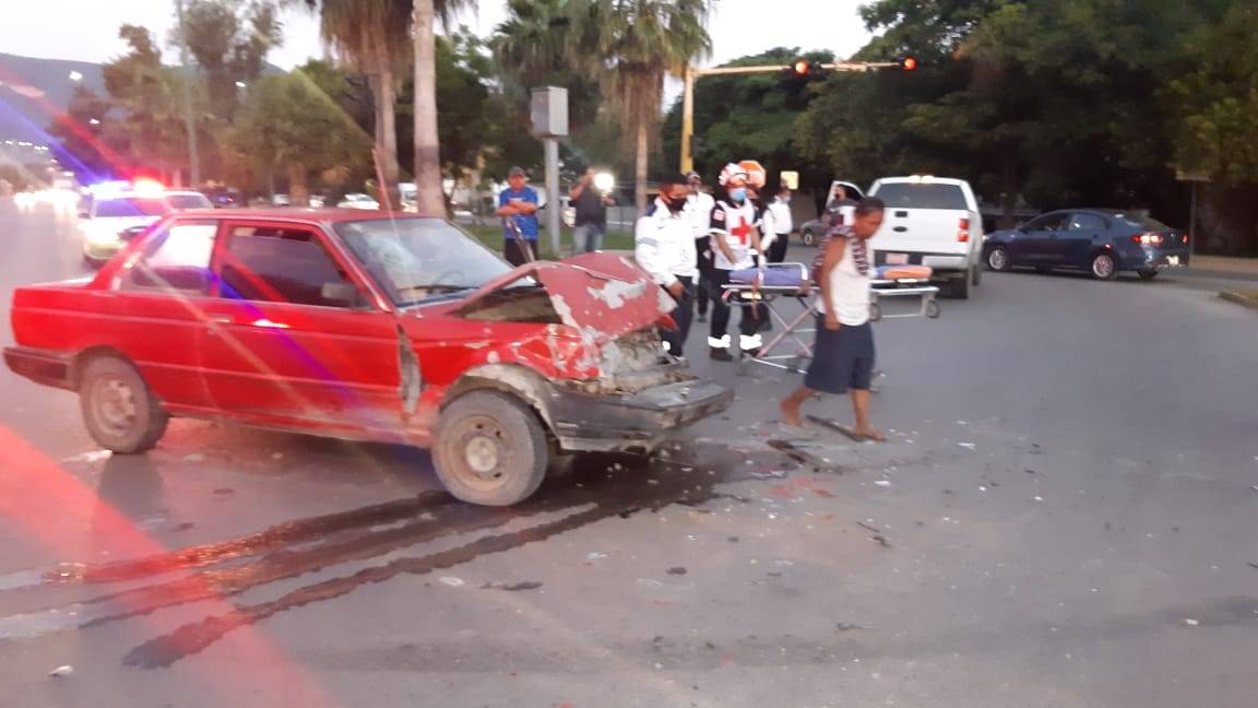 Al llegar al crucero con la calle 21 la conductora del Tsuru ignoró la luz roja del semáforo y se estrelló contra el costado de una camioneta marca Ford tipo Lobo que circulaba con preferencia de paso.