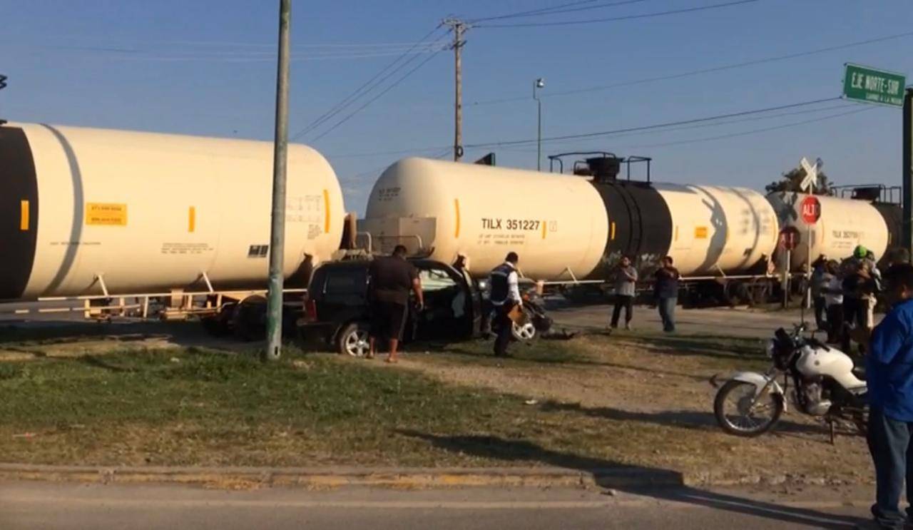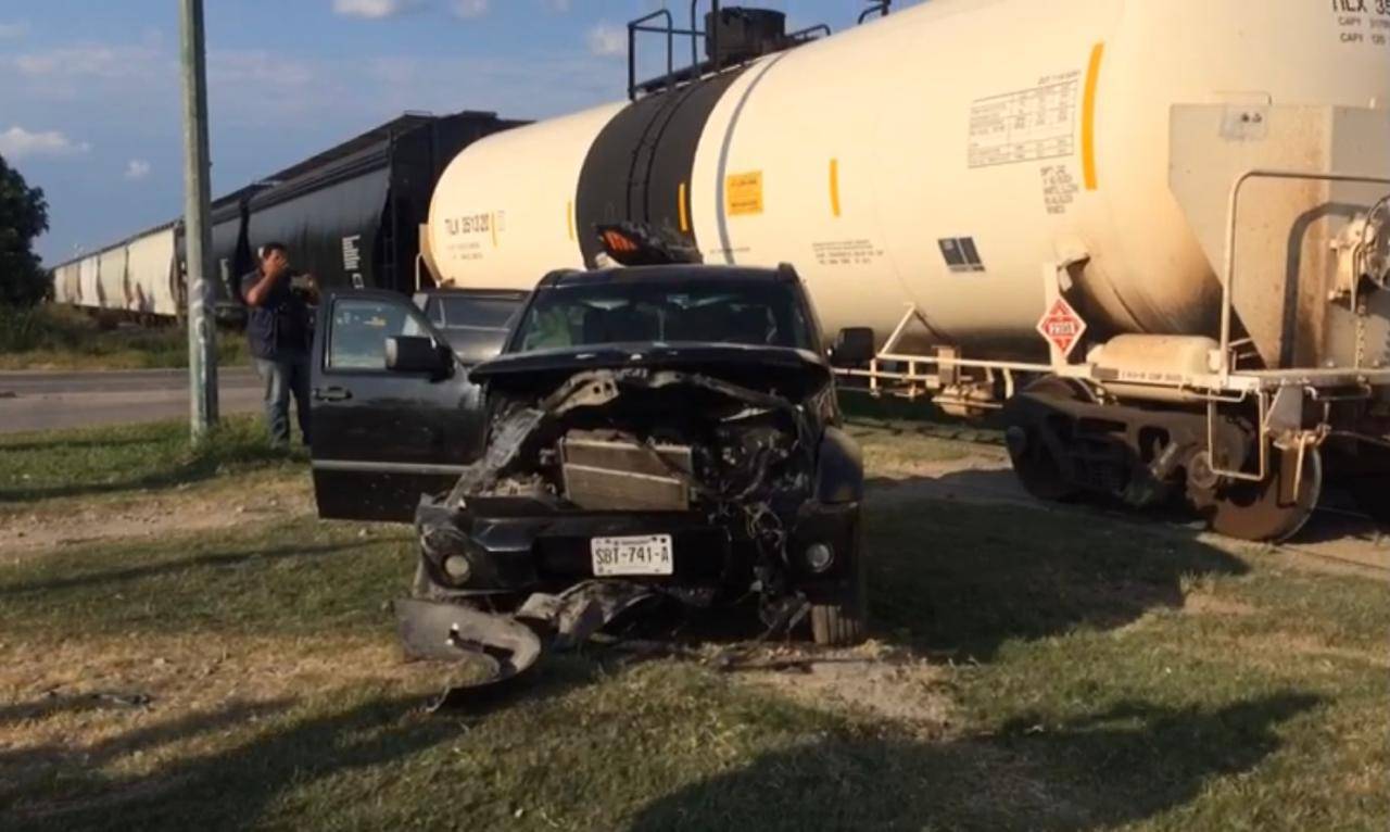 Al llegar al crucero con el Eje Vial Lázaro Cárdenas, la camioneta trató de ganarle el paso al tren y terminó por estrellarse contra la mole de acero.