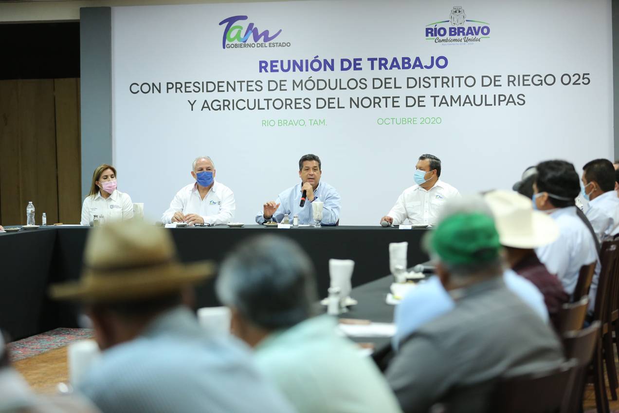 También se reunió con presidentes de módulos del distrito de riego 025 y agricultores del norte de Tamaulipas, en un diálogo abierto los productores del campo presentaron opciones y alcances para atender la falta de agua para el riego agrícola, situación que demanda atención urgente, para este sector productivo.