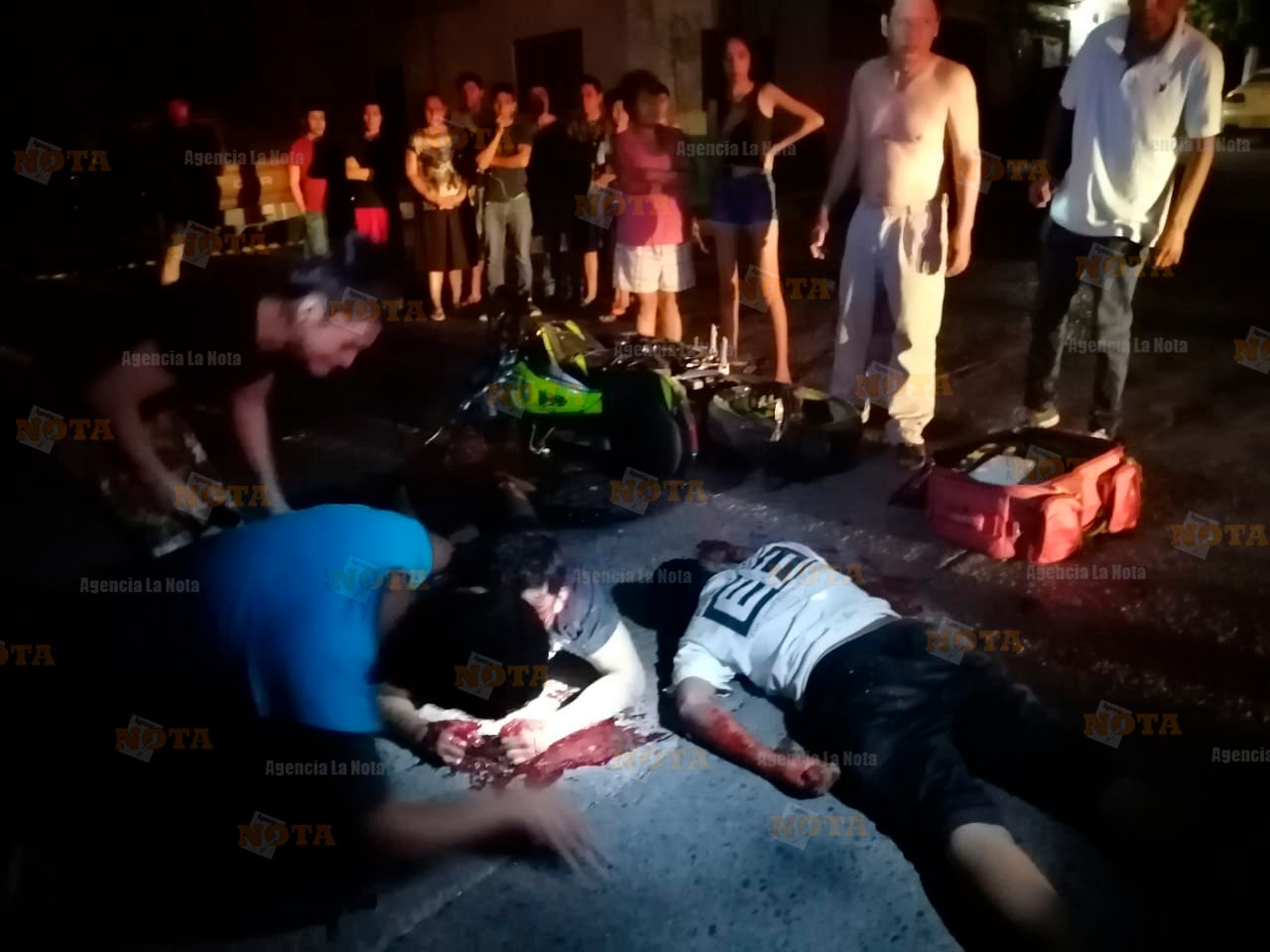 Después de atender en el lugar a los dos jóvenes que viajaban a bordo de la motocicleta los técnicos en urgencias médicas determinaron efectuar su traslado a un hospital.