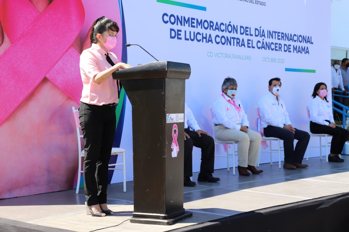 CIUDAD VICTORIA, Tamaulipas.- Con atenciones y estudios gratuitos, ciclos de conferencias y acciones de sensibilización entre la población, el Gobierno de Tamaulipas conmemoró hoy el Día Internacional de la Lucha contra el Cáncer de Mama, una enfermedad que ocupa la primer causa de muerte por cáncer entre las mujeres, pero que puede ser curable mediante el diagnóstico oportuno y el tratamiento adecuado.