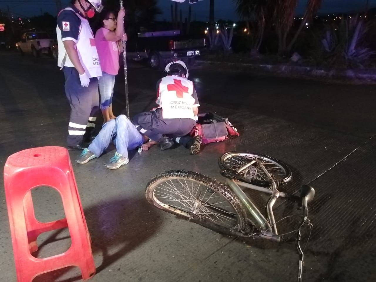 Cuando se dirigía a buscar a unos amigos, un ciclista que presuntamente se salió de su casa en aparente estado de ebriedad terminó tirado en el suelo tras ser arrollado por una camioneta tipo pickup.