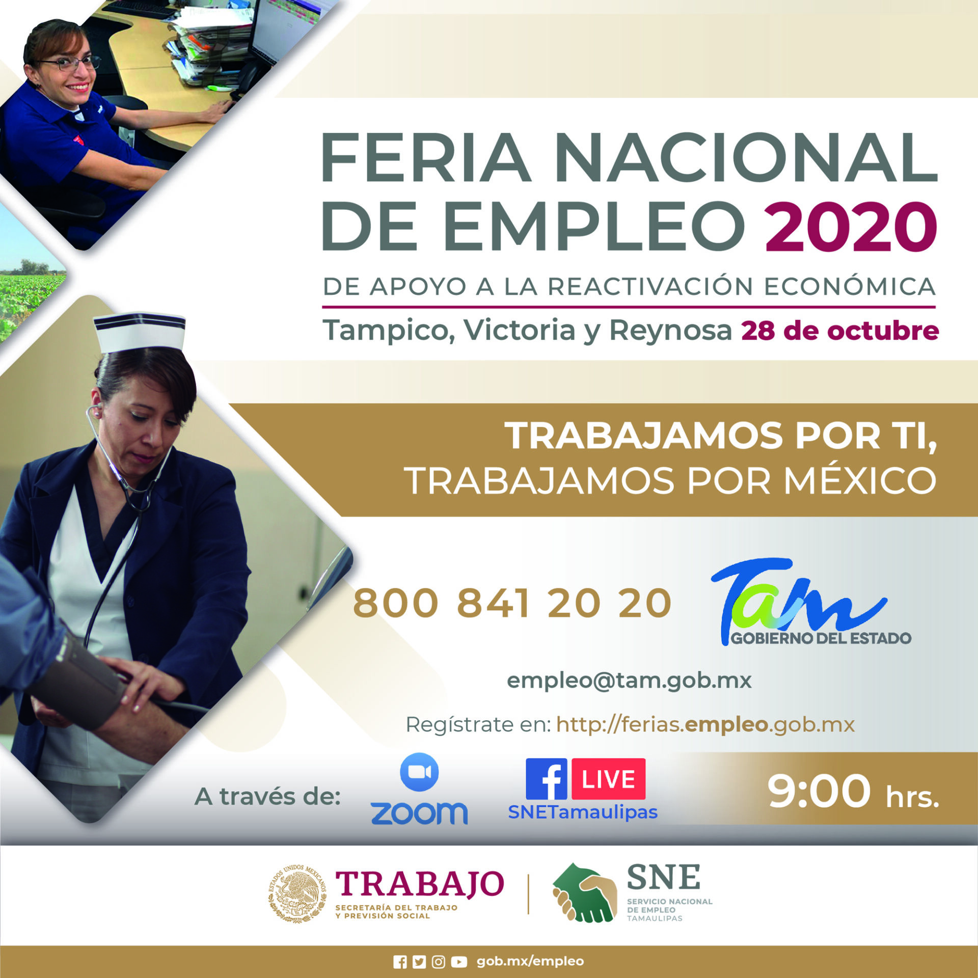 La Secretaría del Trabajo a través del Servicio Nacional de Empleo Tamaulipas, participará de la Feria Nacional de Empleo en Apoyo a la Reactivación Económica 2020, en beneficio de las personas que buscan trabajo.