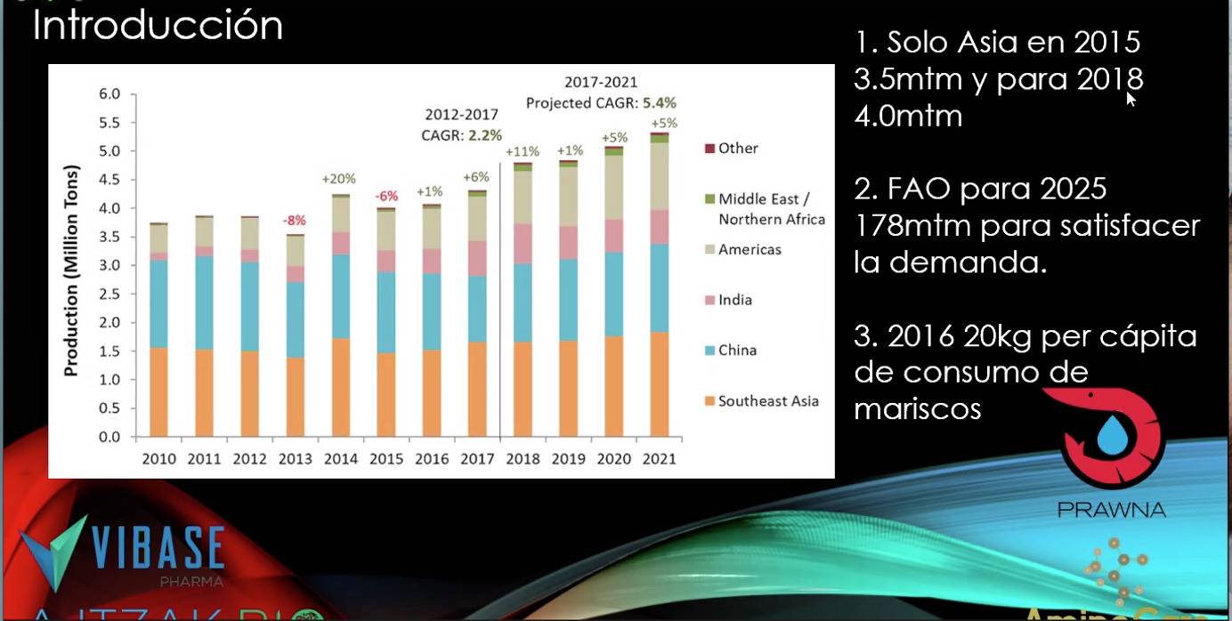 “Parte de los retos es reducir las enfermedades, uno de los problemas de los camarones, es que no tienen memoria inmune, si llega haber una enfermedad y vuelve a caer en unos días después, no tienen respuesta inmune como lo tienen aves o bovinos…”.