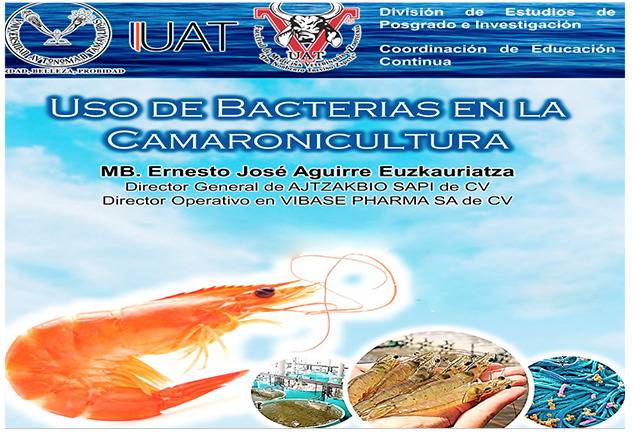 La Facultad de Medicina Veterinaria y Zootecnia (FMVZ) de la Universidad Autónoma de Tamaulipas (UAT), realizó la conferencia virtual "Uso de Bacterias en la Camaronicultura", impartida por el experto del Instituto Tecnológico de Estudios Superiores de Monterrey (ITESM), Ernesto José Aguirre Euzkauriatza.