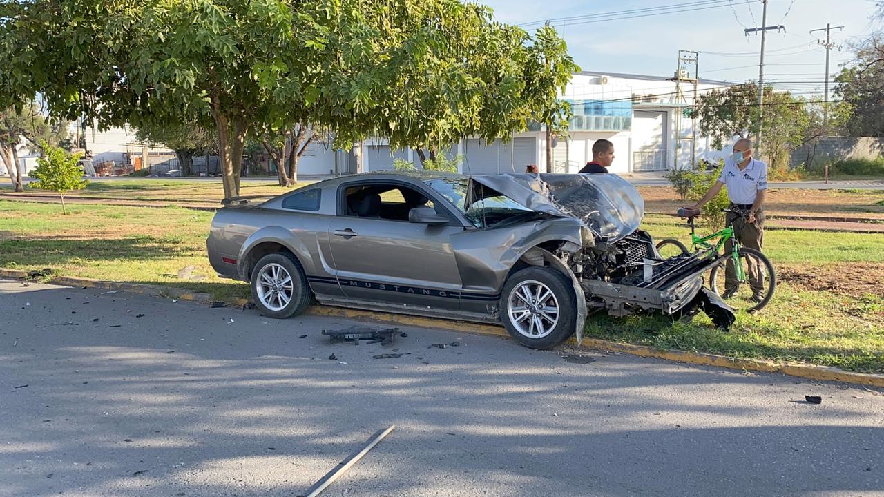 El accidente ocurrió la mañana de este domingo cuando un automóvil marca Ford tipo Mustang circulaba por el bulevar Fidel Velázquez en sentido de norte a sur.