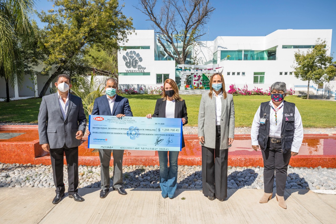 La Presidenta del Sistema DIF Tamaulipas, Mariana Gómez de García Cabeza de Vaca, recibió de parte de la Cámara Mexicana de la Industria de la Construcción de Tamaulipas, un segundo donativo para el fondo de “Héroes de la Salud” que se creó a iniciativa del Gobernador, Francisco García Cabeza de Vaca, con la finalidad de reconocer el trabajo del personal de salud que se encuentra en la primera línea de atención a pacientes COVID-19.